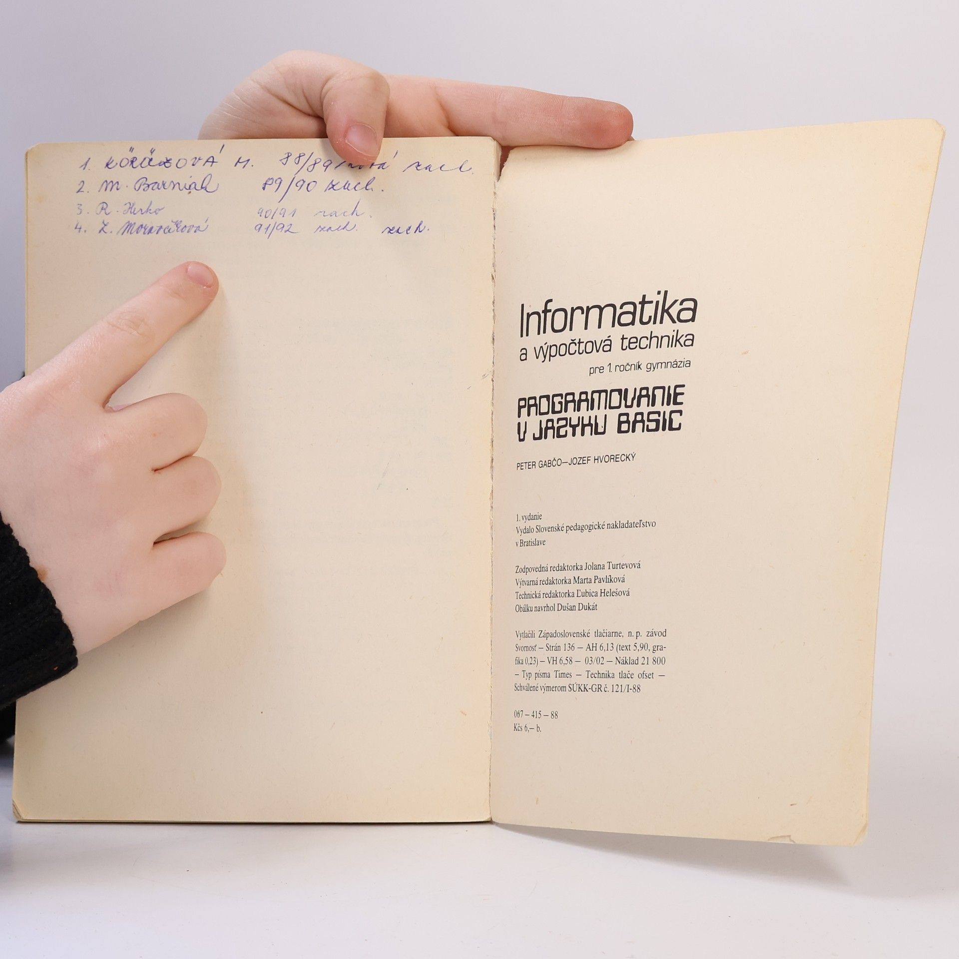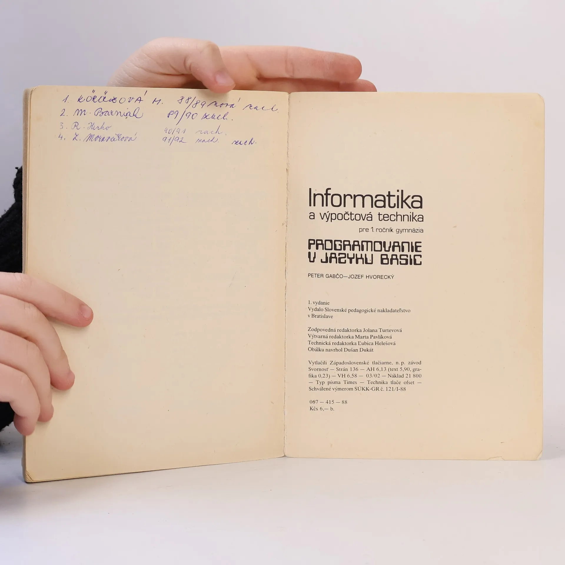 Informatika a výpočtová technika pre 1. ročník gymnázia, Peter Gabčo, Jozef Hvorecký