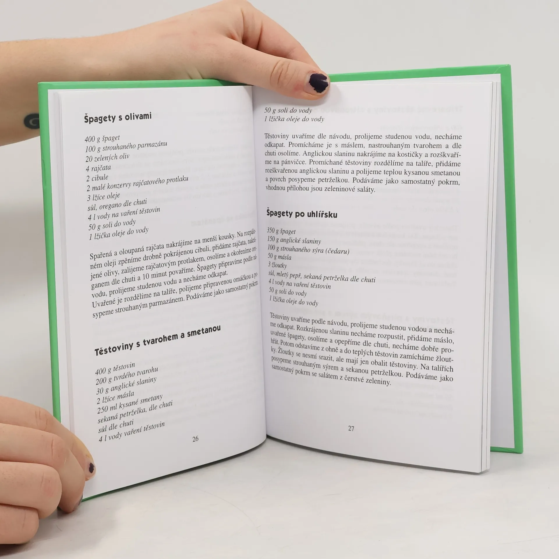 Recepty na přípravu různých druhů těstovin, jako vhodné přílohy k masitým a zeleninovým pokrmům. Kuchařka nabízí recepty na přípravu samotných těstovin a drobení, na vařené a zapečené těstoviny bezmasé, s masem, s rybami a dary moře, se zelenninou i na další slané i sladké těstovinové pokrmy. Recepty jsou stručné, obsahují přehled surovin a popis přípravy.