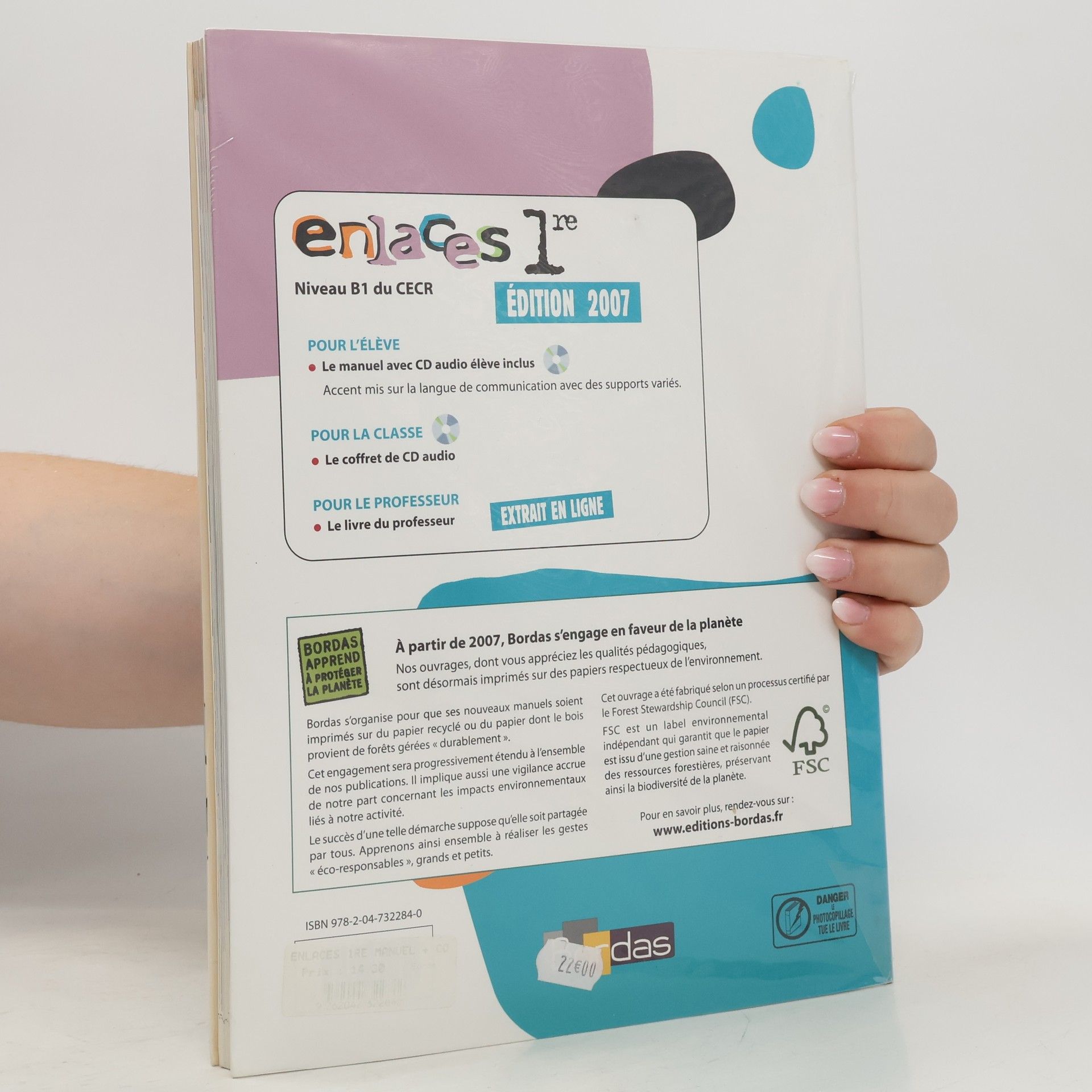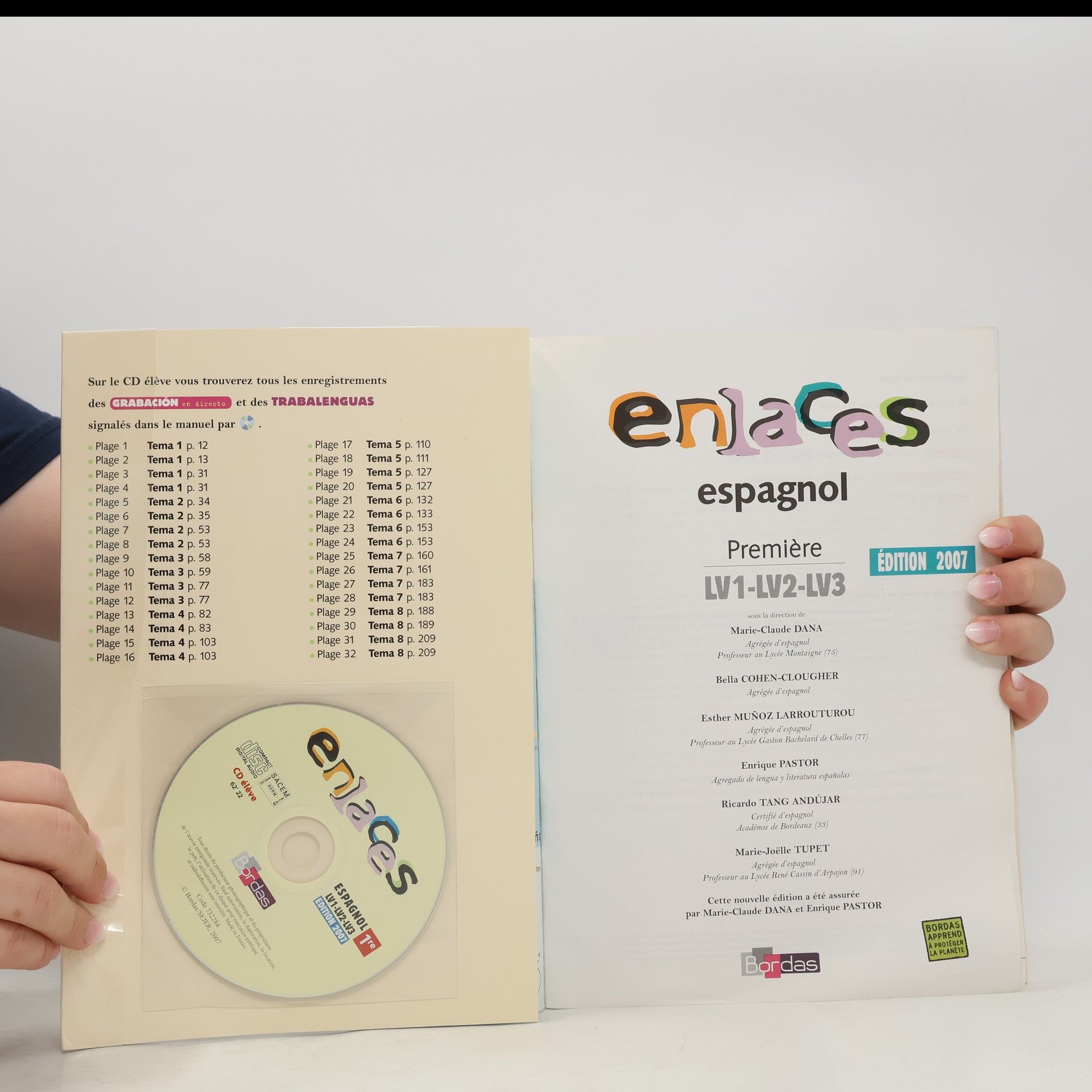 Enlaces 1re. Edition 2007. Niveau B1 du CECR. Pour l'élève : le manuel avec CD audio élève inclus. Accent mis sur la langue de communication avec des supports variés. Pour la classe : le coffret de CD audio. Pour le professur : le livre du professeur.