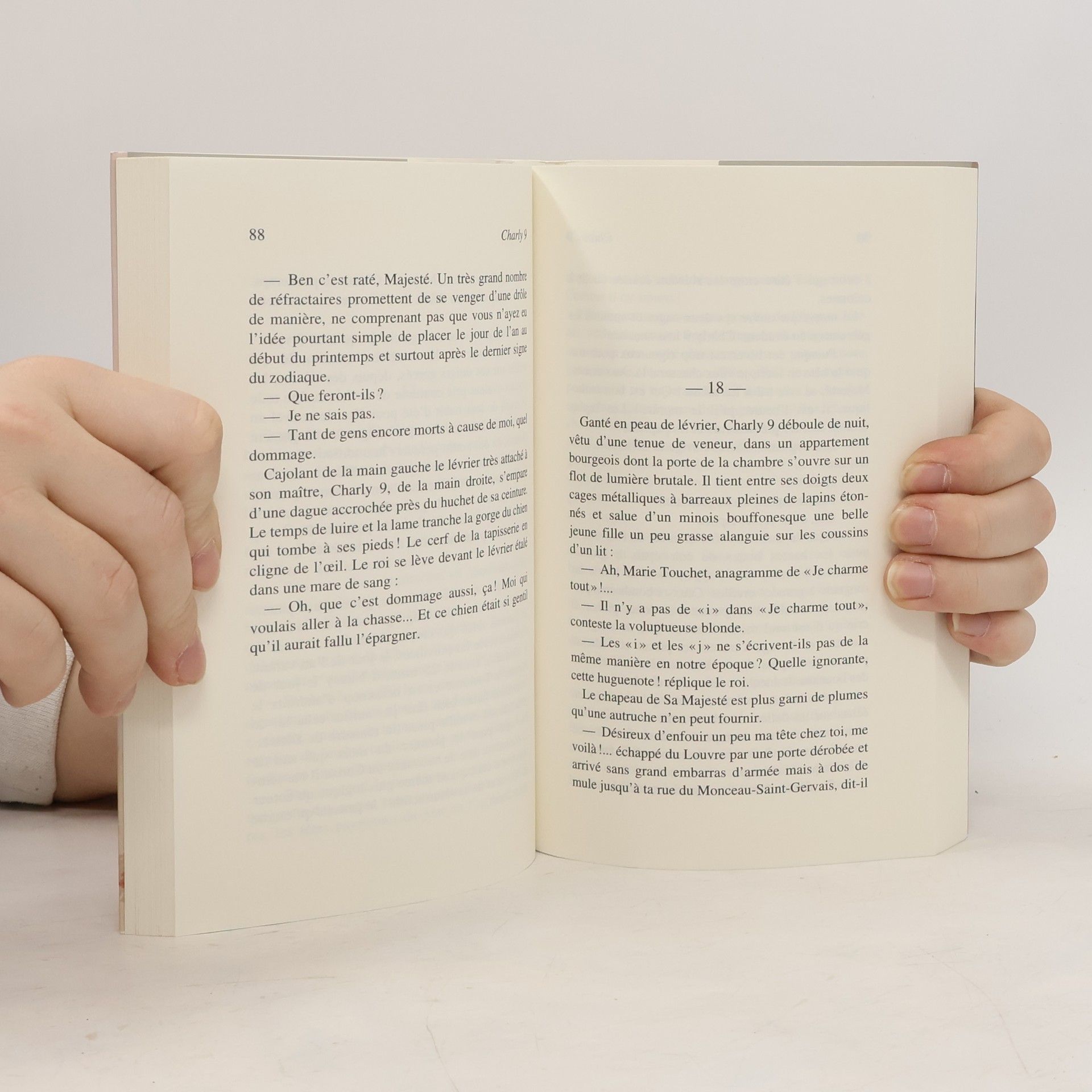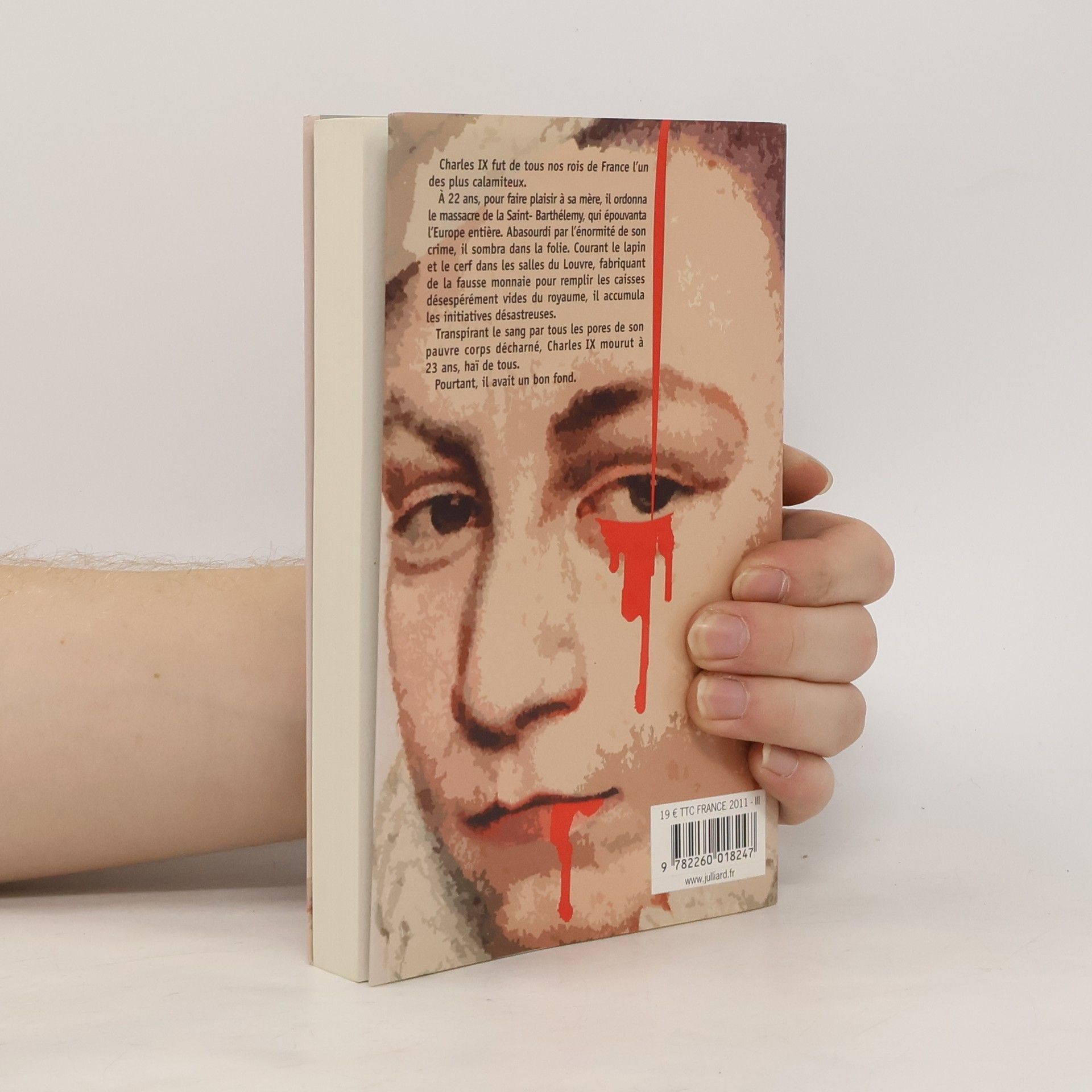 Charles IX fut de tous nos rois de France l'un des plus calamiteux. A 22 ans, pour faire plaisir à sa mère, il ordonna le massacre de la Saint Barthélemy qui épouvanta l'Europe entière. Abasourdi par l'énormité de son crime, il sombra dans la folie. Courant le lapin et le cerf dans les salles du Louvre, fabriquant de la fausse monnaie pour remplir les caisses désespérément vides du royaume, il accumula les initiatives désastreuses. Transpirant le sang par tous les pores de son pauvre corps décharné, Charles IX mourut à 23 ans, haï de tous. Pourtant, il avait un bon fond.
