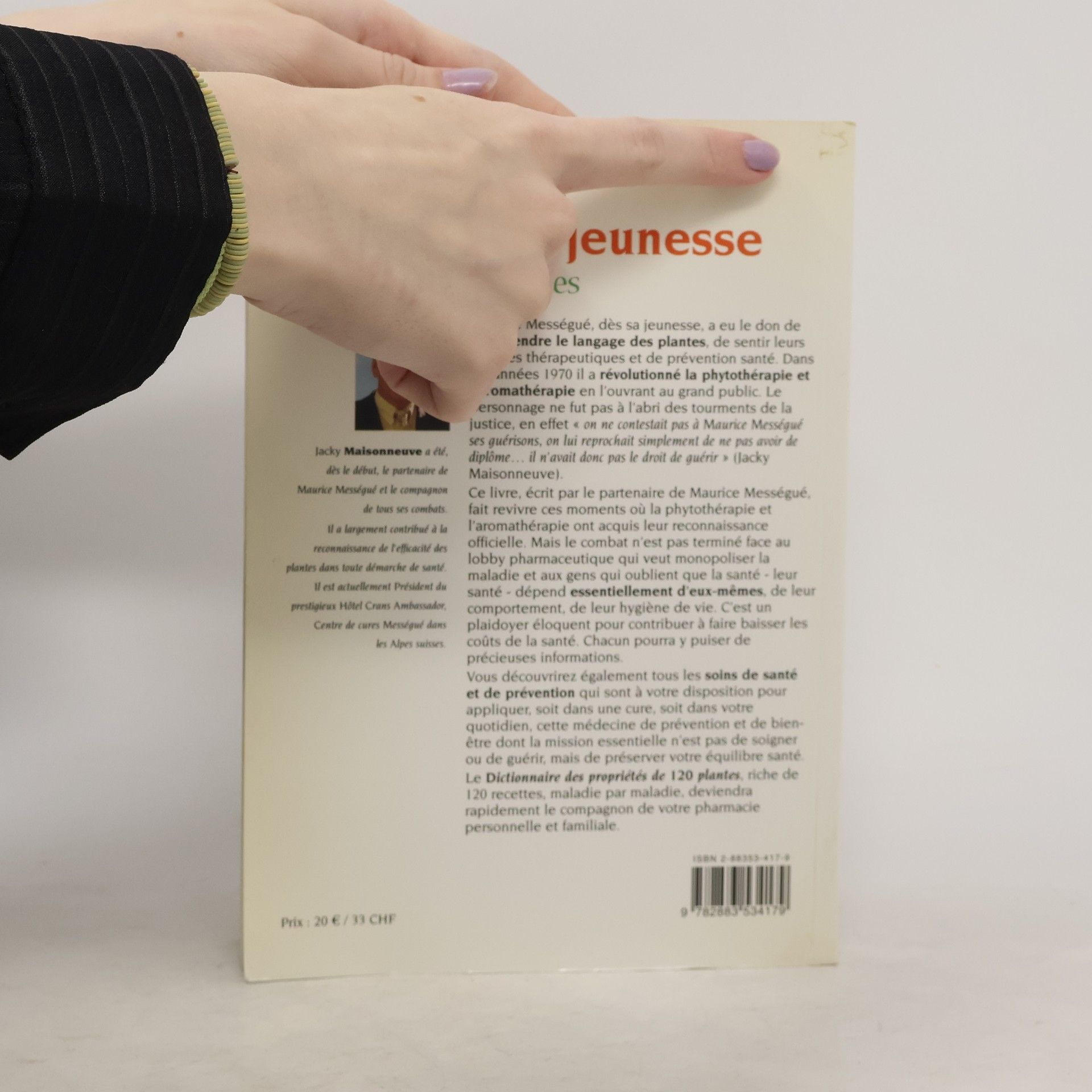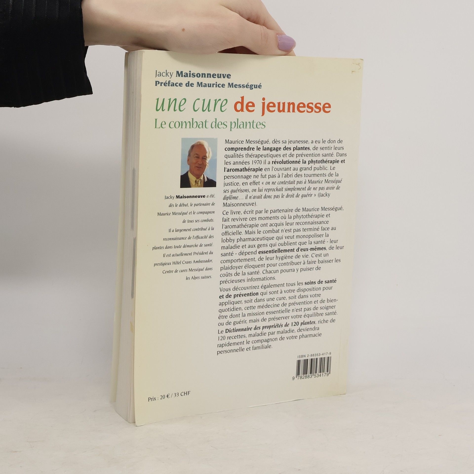 Maurice Mességué, dès sa jeunesse, a eu le don de comprendre le langage des plantes, de sentir leurs qualités thérapeutiques et de prévention santé. Dans les années 1970 il a révolutionné la phytothérapie et l'aromathérapie en l'ouvrant au grand public. Le personnage ne fut pas à l'abri des tourments de la justice, en effet " on ne contestait pas à Maurice Mességué ses guérisons, on lui reprochait simplement de ne pas avoir de diplôme... il n'avait donc pas le droit de guérir " (Jacky Maisonneuve). Ce livre, écrit par le partenaire de Maurice Mességué, fait revivre ces moments où la phytothérapie et l'aromathérapie ont acquis leur reconnaissance officielle. Mais le combat n'est pas terminé face au lobby pharmaceutique qui veut monopoliser la maladie et aux gens qui oublient que la santé - leur santé - dépend essentiellement d'eux-mêmes, de leur comportement, de leur hygiène de vie. C'est un plaidoyer éloquent pour contribuer à faire baisser les coûts de la santé. Chacun pourra y puiser de précieuses informations. Vous découvrirez également tous les soins de santé et de prévention qui sont à votre disposition pour appliquer, soit dans une cure, soit dans votre quotidien, cette médecine de prévention et de bien-être dont la mission essentielle n'est pas de soigner ou de guérir, mais de préserver votre équilibre santé. Le Dictionnaire des propriétés de 120 plantes, riche de 120 recettes, maladie par maladie, deviendra rapidement le compagnon de votre pharmacie personnelle et familiale.