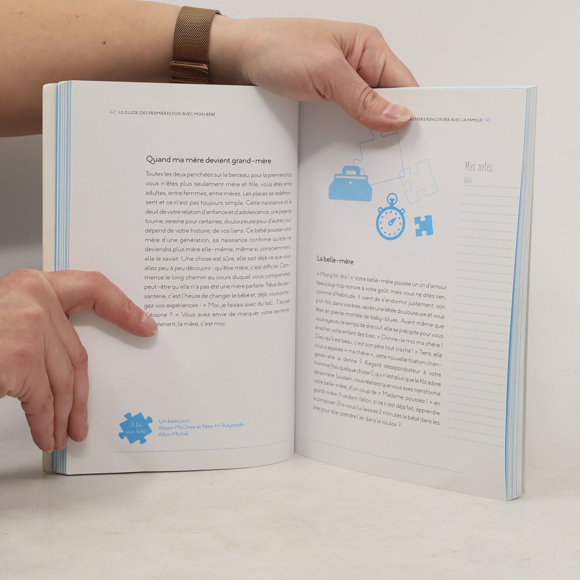 Bébé vient d’arriver et vous devez effectuer les premiers gestes : le bain, la toilette, le biberon ou l'allaitement. Bien sûr, votre bébé pleure : que faire ? Quand le conduire pour la première fois chez le médecin ? Peut-on le confier, s’autoriser une sortie ?Ce guide précieux vous accompagnera dans toutes ces premières fois, si importantes dans votre vie de parents débutants. Des astuces et des conseils, un véritable mode d’emploi, pas à pas, pour oublier le stress et profiter pleinement et sereinement de votre enfant : bébé n’en sera que plus heureux !Le ton est celui de l’émission : chaleureux, pédagogique, teinté d’une touche d’humour voire d’impertinence. On retrouvera dans le guide l’alternance de témoignages et d’intervention de spécialistes qui caractérise l’émission ainsi que des espaces à remplir pour ce livre soit unique.