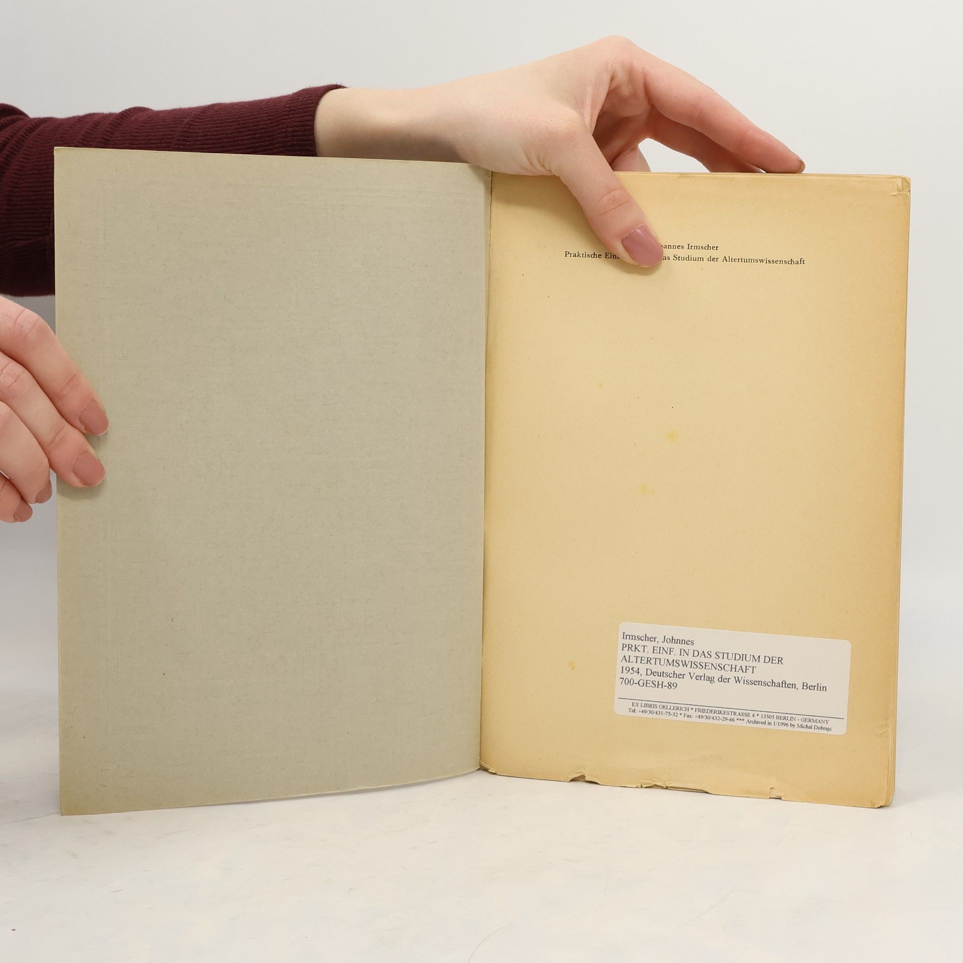 Praktische Einführung in das Studium der Altertumswissenschaften, Johannes Irmscher