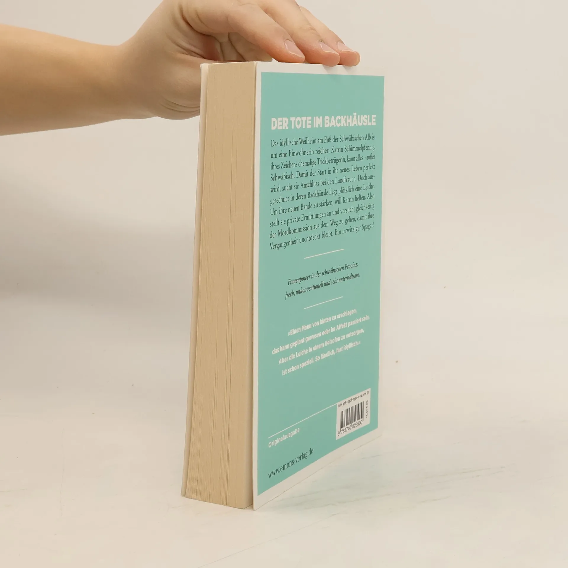 Der Tote im Backhäusle Das idyllische Weilheim am Fuß der Schwäbischen Alb ist um eine Einwohnerin reicher: Katrin Schimmelpfennig, ihres Zeichens ehemalige Trickbetrügerin, kann alles – außer Schwäbisch. Damit der Start in ihr neues Leben perfekt wird, sucht sie Anschluss bei den Landfrauen. Doch ausgerechnet in deren Backhäusle liegt plötzlich eine Leiche. Um ihre neuen Bande zu stärken, will Katrin helfen. Also stellt sie private Ermittlungen an und versucht gleichzeitig der Mordkommission aus dem Weg zu gehen, damit ihre Vergangenheit unentdeckt bleibt. Ein irrwitziger Spagat!