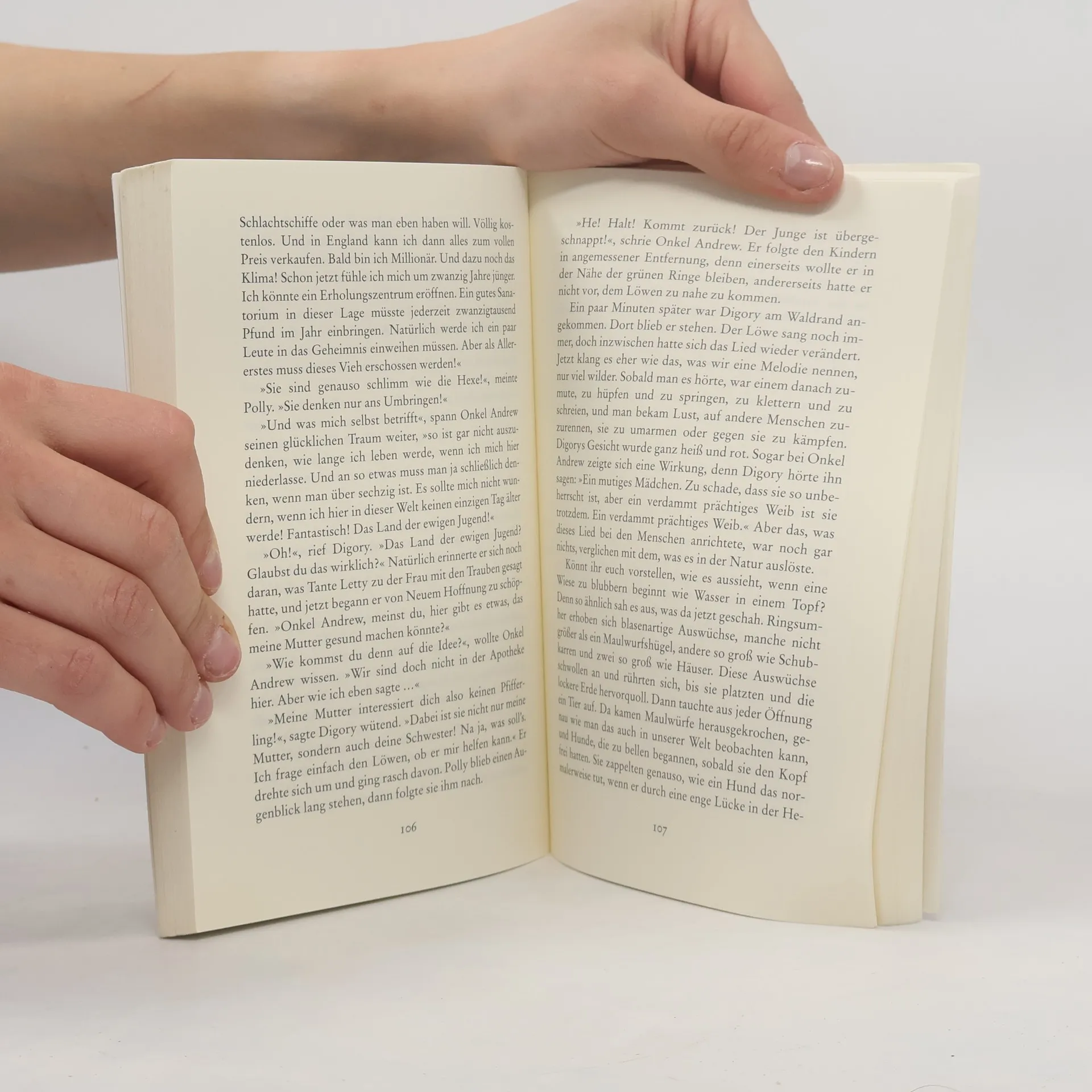 Hätte es nicht den ganzen Sommer geregnet, hätten Polly und Digory ganz sicher nicht auf dem Dachboden gespielt. Dann hätten sie auch die verborgene Tür nicht entdeckt, die zu Onkel Andrews geheimem Arbeitszimmer führte. In diesem Zimmer hätten sie dann auch nicht das rote Tablett mit zwei gelben und zwei grünen Ringen gefunden. Und dann wäre diese Geschichte nie passiert.§"Das Wunder von Narnia" führt die Kinder in das geheimnisvolle Reich des Löwen Aslan, der es mit einem Lied erschaffen hat. Doch in der Gestalt der furchtbaren Königin Jadis schleicht sich bereits das Böse ein ...