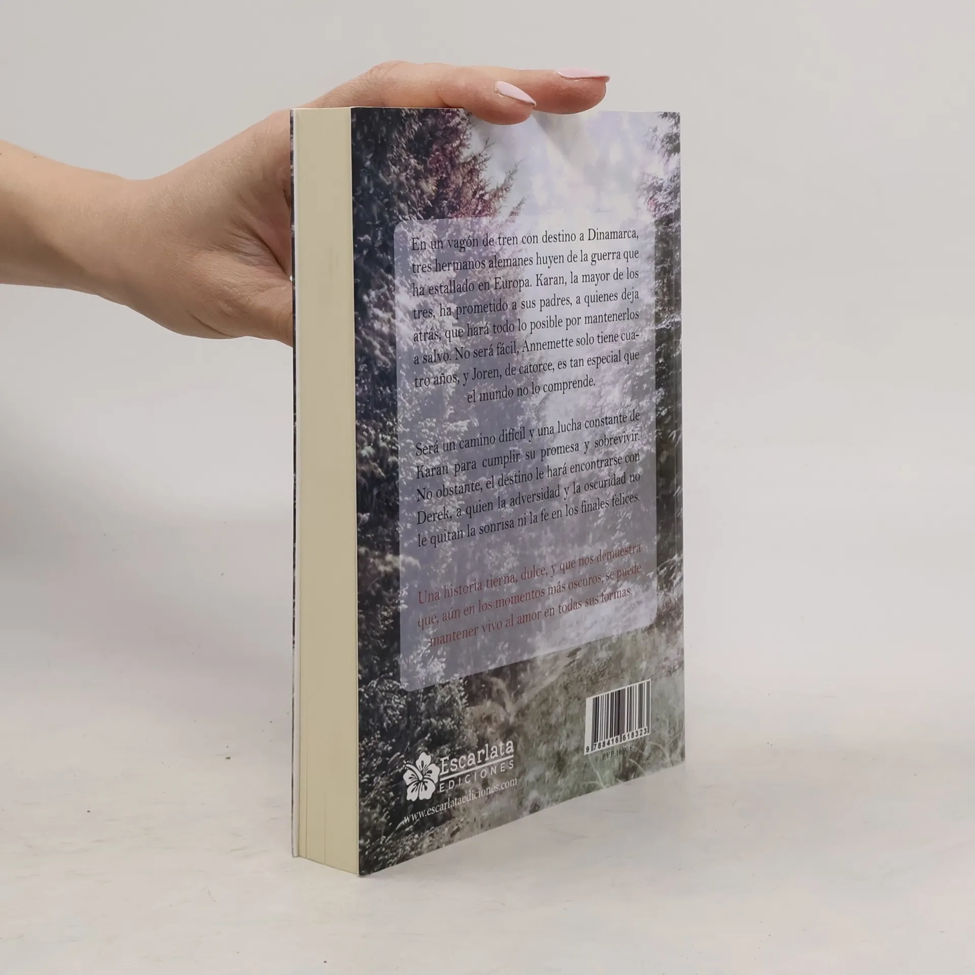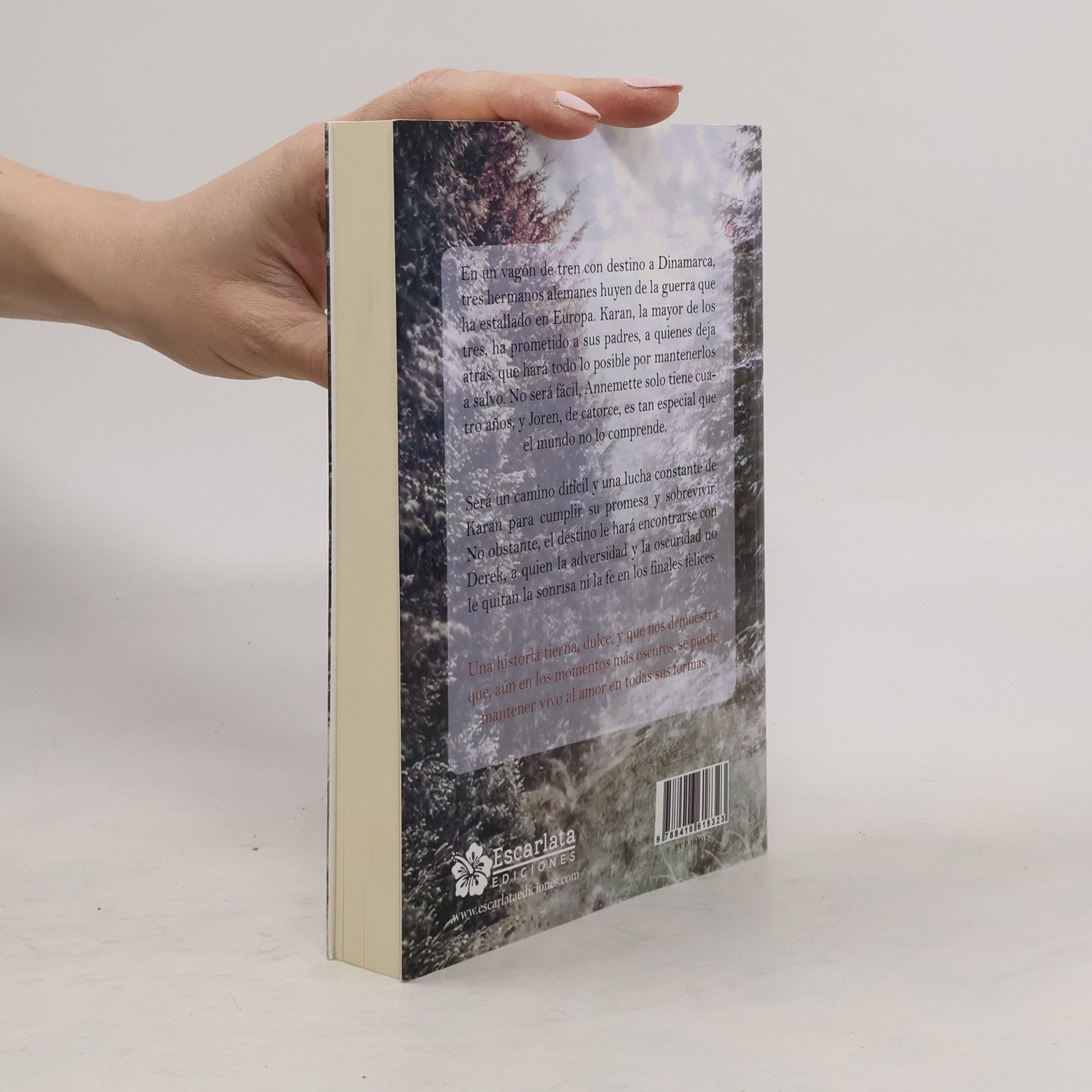 Dinamarca,1940. En un vagón de tren con destino a Dinamarca, tres hermanos alemanes huyen de la guerra que ha estallado en Europa. Karan, la mayor de los tres, ha prometido a sus padres, a quienes deja atrás, que hará todo lo posible por mantenerlos a salvo. No será fácil, Annemette solo tiene cuatro años, y Joren, de catorce, es tan especial que el mundo no lo comprende. Será un camino difícil y una lucha constante de Karan para cumplir su promesa y sobrevivir. No obstante, el destino le hará encontrarse con Derek, a quien la adversidad y la oscuridad no le quitan la sonrisa ni la fe en los finales felices. Una historia tierna, dulce, y que nos demuestra que, aún en los momentos más oscuros, se puede mantener vivo al amor en todas sus formas.