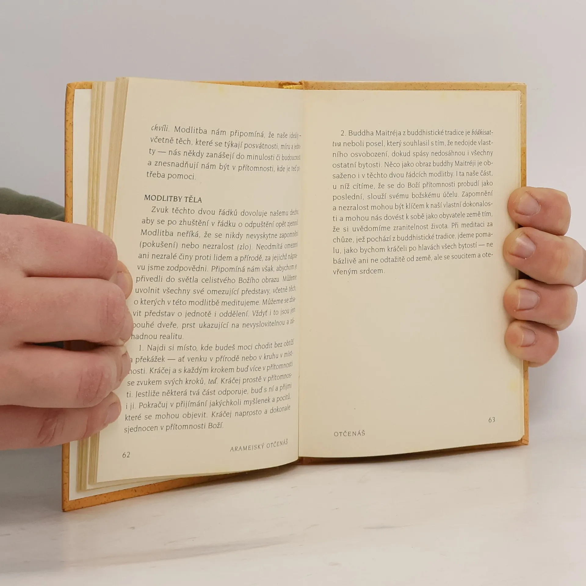 Duchovní tradice Blízkého východu poukazují na to, že na každou větu svatých učení je třeba nahlížet alespoň ze tří hledisek: intelektuálního, metaforického a universálního (nebo mystického). Z prvního zvažujeme vnější, doslovný význam, z druhého zkoumáme, jakým způsobem se nám příběh může stát podobenstvím pro náš život nebo život společnosti. Z třetího dospíváme k prožití pravdy, na niž zkoumaná věta Písma míří. Tady musíme jít až za slovní pochopení a obsáhnout i bezeslovnou zkušenost, na kterou živá slova mystiků ukazují. Pro mystika z Blízkého východu, jako byl Ježíš, se tato hlediska navzájem nevylučují. Je proto dobré mít na paměti všechny možné významy posvátných slov modliteb a nechat je na sebe působit. Podle Fabre d’Oliveta spočívá tragédie moderních překladů bible přes řečtinu, jazyk zcela odlišný od hebrejštiny a aramejštiny Ježíšova původního jazyka, v důsledném okleštění mnoha významových rovin jednotlivých výroků pouze na materiální a zcela konkrétní pojmy. Na rozdíl od řečtiny nemá aramejština žádnou ostrou dělící čáru mezi prostředkem a účelem, mezi vnitřní kvalitou a vnějším jednáním. Svévolné hranice mezi „rozumem“, „tělem“ a „duchem“ zde vůbec nejsou přítomny. Nepřirozené vzájemné odloučení Boha, přírody a člověka, neznámé lidem, kteří žili svázáni se zemí, se vplížilo i do našeho jazyka. Ve srovnání s řečtinou a našimi moderními jazyky skýtá aramejština plynoucí a celostní vizi kosmu. Překlad Otčenáše, Blahoslavení a tří dalších Ježíšových výroků z evangelií z aramejštiny, původního Ježíšova jazyka, pořídil Neil Douglas-Klotz. Originální aramejský text, komentáře a modlitby těla. Předmluva Matthew Fox.