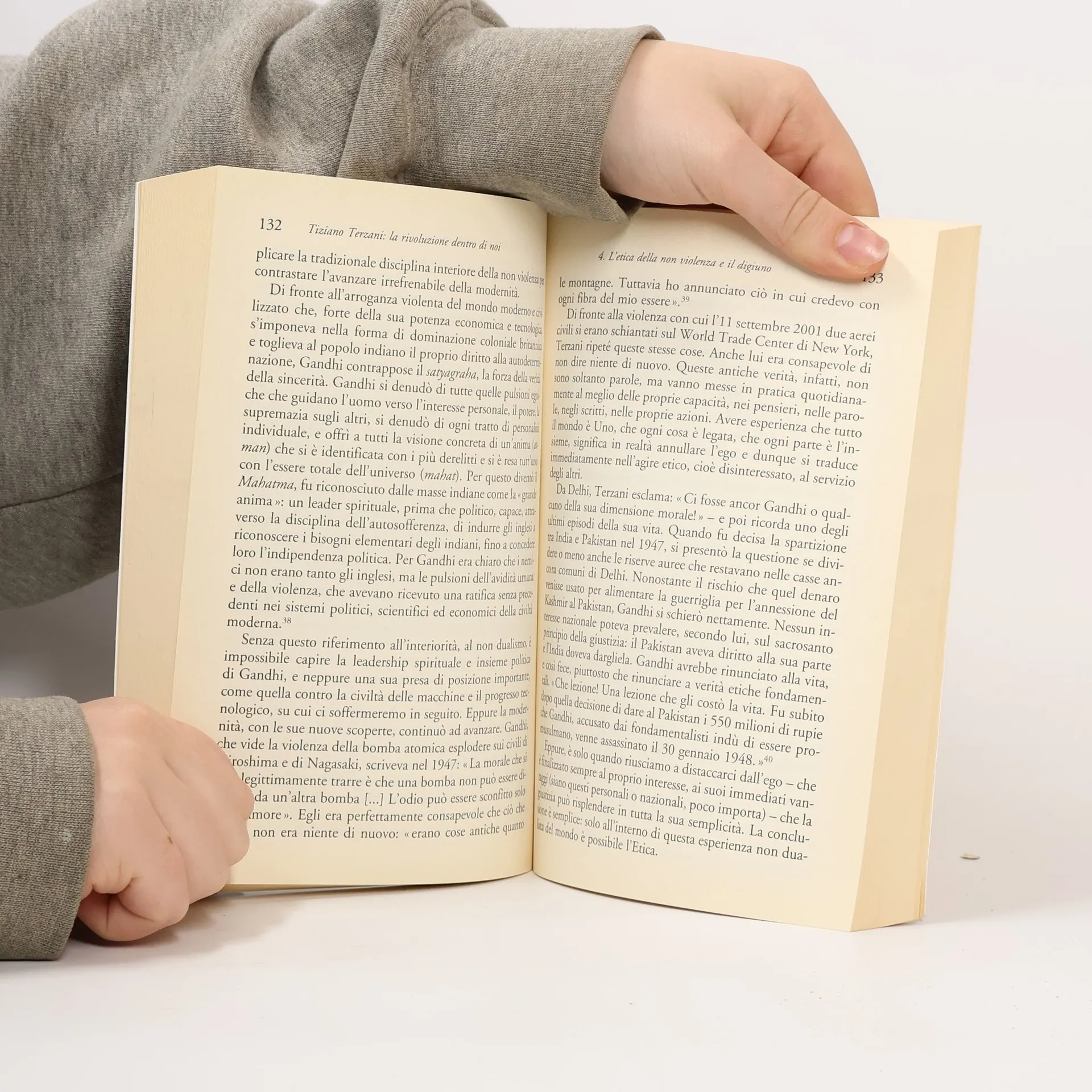 Come i "commentari" accompagnano in Oriente i testi dell'antica saggezza spirituale, Gloria Germani, indologa, accompagna in questo libro i testi di Tiziano Terzani, inserendone l'incessante ricerca volta a dare un senso alle cose e alla vita in una prospettiva storica e filosofica di ampio respiro. Facendo dialogare saperi spesso a torto considerati in antitesi, come il pensiero orientale da un lato e la tradizione mistico-filosofica occidentale dall'altro, l'autrice mostra come l'anelito a una non violenza che abbracci anche il rapporto tra uomo e natura sia l'unica strada percorribile. Solo liberandoci dai dettami imposti dal nostro modo di vedere le cose e rinunciando a ogni conflittualità può avvenire quella lenta, silenziosa ma inesorabile rivoluzione ulteriore che Terzani ha perseguito e infine realizzato. L'auspicio di Tiziano-Anam, "il Senzanome", a osservare questo nostro mondo come dall'alto di una montagna, con la distanza necessaria per comprenderlo e riscoprirne l'intima bellezza, è quindi un invito reale e concreto per provare a cambiarlo veramente. Grazie all'unica rivoluzione quella che decidiamo di far avvenire dentro di noi.