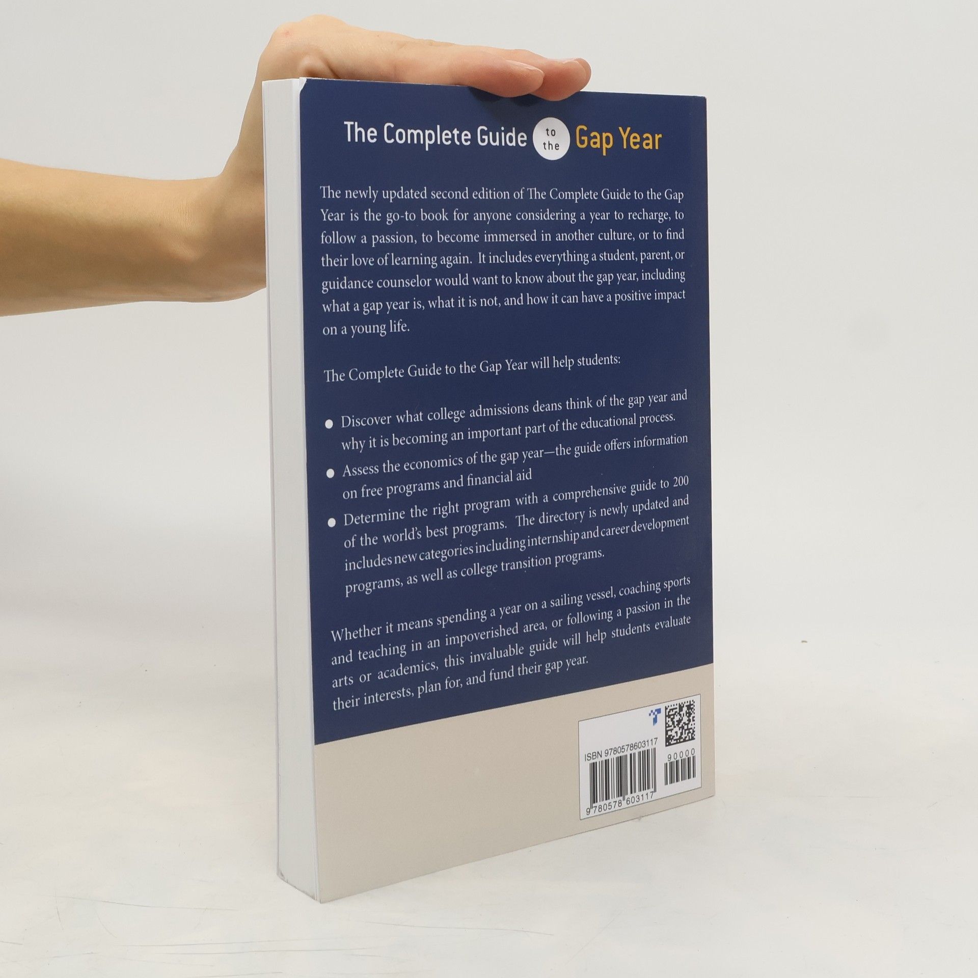 The newly updated second edition of The Complete Guide to the Gap Year is the go-to book for anyone considering a year to recharge, to follow a passion, to become immersed in another culture, or to find their love of learning again. It includes everything a student, parent, or guidance counselor would want to know about the gap year, including what a gap year is, what it is not, and how it can have a positive impact on a young life. The Complete Guide to the Gap Year will help students: * Discover what college admissions deans think of the gap year and why it is becoming an important part of the educational process.* Assess the economics of the gap year---the guide offers information on free programs and financial aid* Determine the right program with a comprehensive guide to 200 of the world's best gap year programs. The directory is newly updated and includes new categories including internship and career development programs, as well as college transition programs.Whether it means spending a year on a sailing vessel, coaching sports and teaching in an impoverished area, or following a passion in the arts or academics, this invaluable guide will help students evaluate their interests, plan for, and fund their gap year.