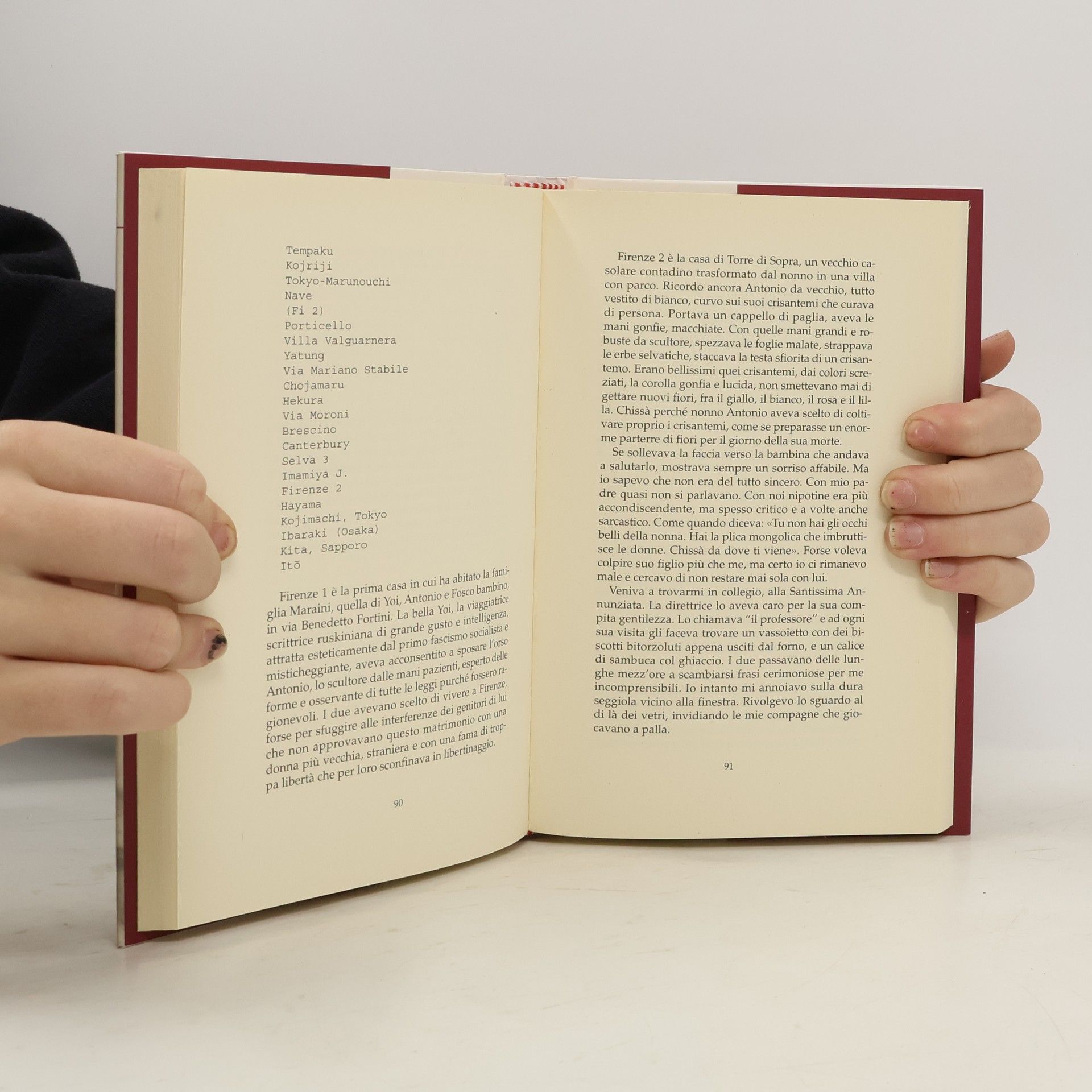 Leggendo, riflettendo sui taccuini di Fosco Maraini - grandi pagine a quadretti ricoperte da una grafia minuta e serena - Dacia ricostruisce la personalità del padre: "Come cominciare un tuffo dentro questi taccuini paterni, che sono così vivi e ironici, che raccontano di sé parlando d'altro? Pullulano di osservazioni sul linguaggio, sulla storia, sulle religioni, sui costumi. Sono disseminati di poesie, di diari, di progetti narrativi mai portati a termine. Segno che la narrazione in lui era sempre latente, ma non arrivava al compimento."