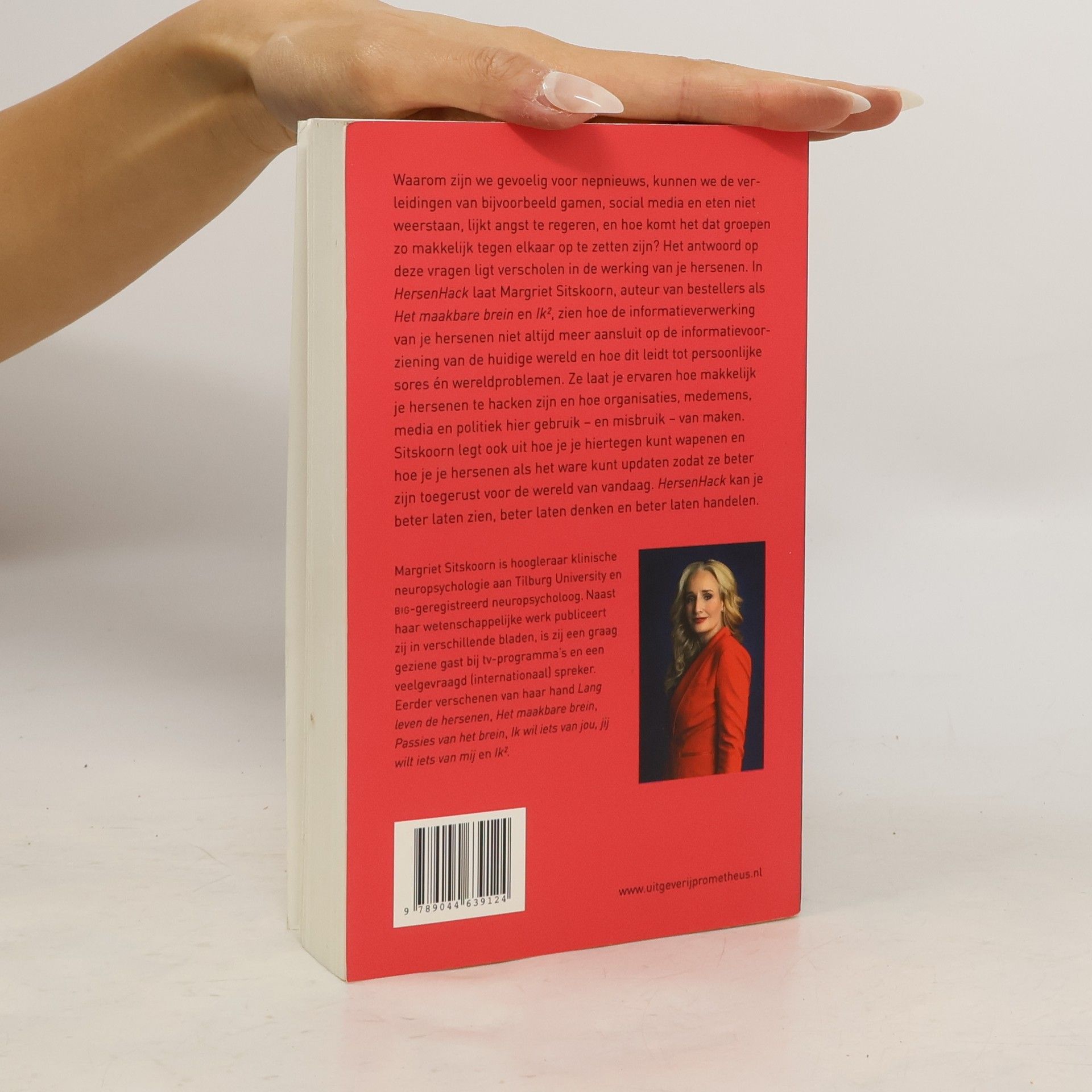 Waarom zijn we gevoelig voor nepnieuws, kunnen we de verleidingen van bijvoorbeeld gamen, social media en eten niet weerstaan, lijkt angst te regeren, en hoe komt het dat groepen zo makkelijk tegen elkaar op te zetten zijn? Het antwoord op deze vragen ligt verscholen in de werking van je hersenen. In HersenHack laat Margriet Sitskoorn, auteur van bestellers als Het maakbare brein en Ik2, zien hoe de informatieverwerking van je hersenen niet altijd meer aansluit op de informatievoorziening van de huidige wereld en hoe dit leidt tot persoonlijke sores én wereldproblemen. Ze laat je ervaren hoe makkelijk je hersenen te hacken zijn en hoe organisaties, medemens, media en politiek hier gebruik – en misbruik - van maken. Sitskoorn legt ook uit hoe je je hiertegen kunt wapenen en hoe je je hersenen als het ware kunt updaten zodat ze beter zijn toegerust voor de wereld van vandaag. HersenHack kan je beter laten zien, beter laten denken en beter laten handelen. Margriet Sitskoorn is hoogleraar klinische neuropsychologie aan Tilburg University en BIG-geregistreerd neuropsycholoog. Naast haar wetenschappelijke werk publiceert zij in verschillende bladen, is zij een graag geziene gast bij tv-programma’s en een veelgevraagd (internationaal) spreker. Eerder verschenen van haar hand Het maakbare brein, Passies van het brein, Ik wil iets van jou, jij wilt iets van mij en Ik2.