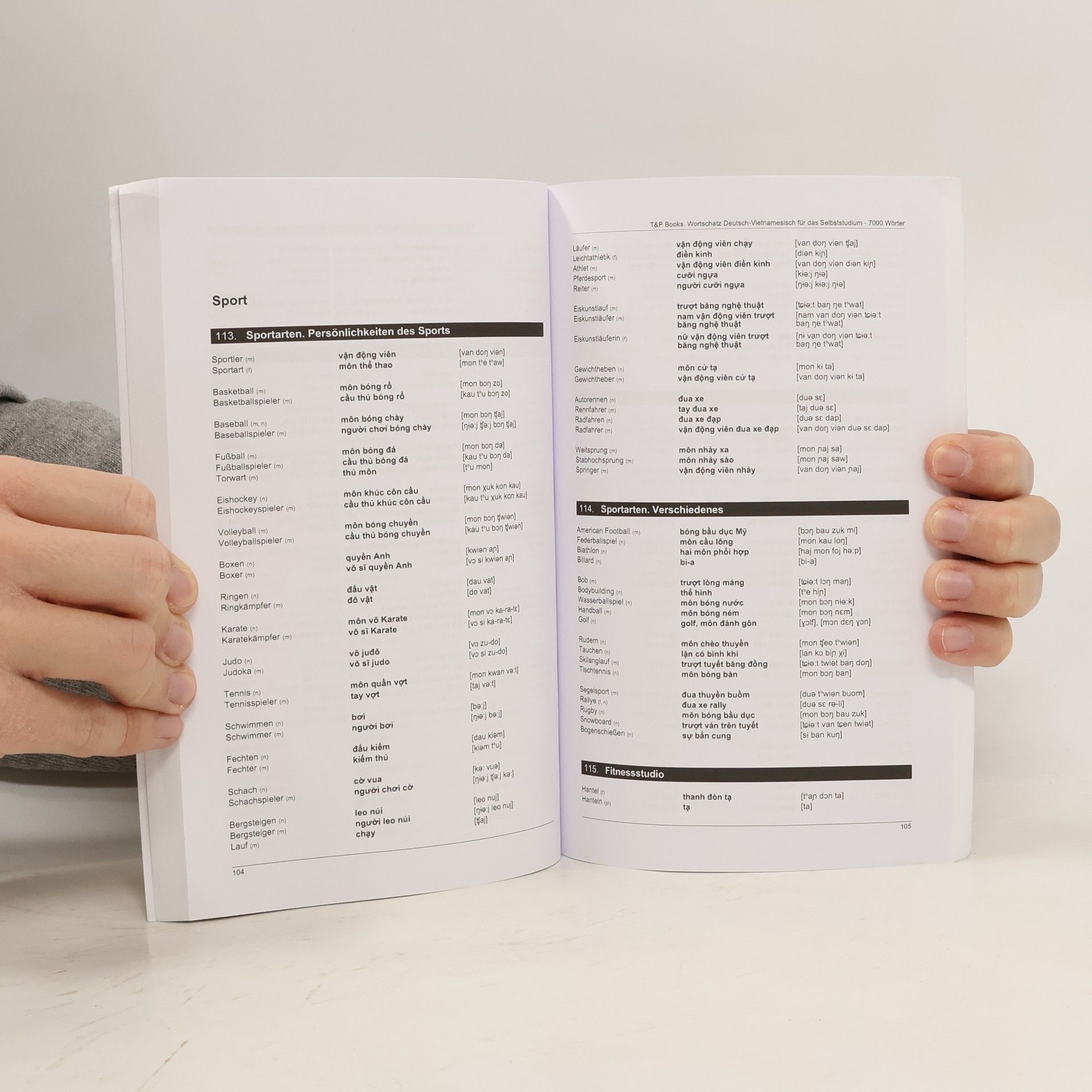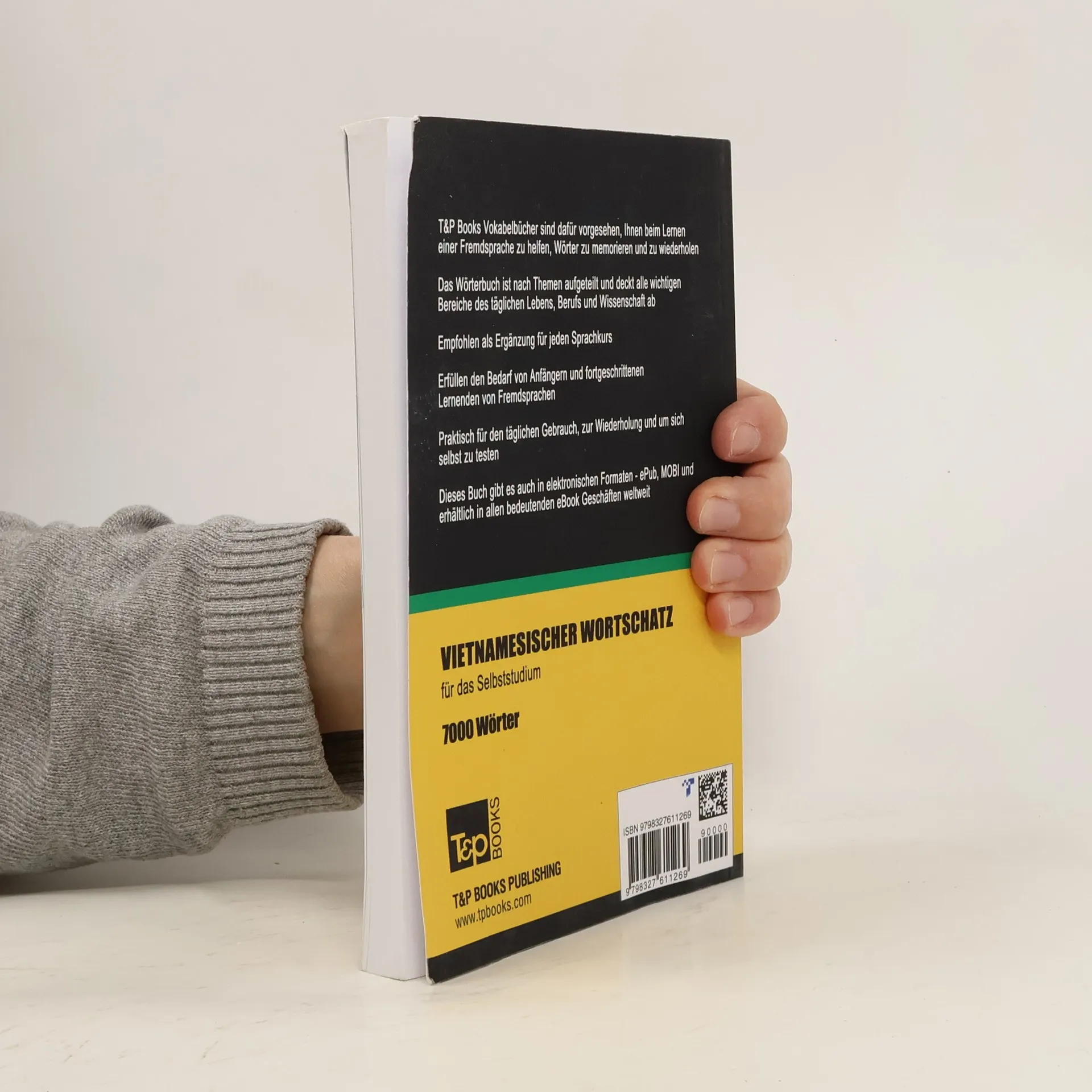Die Vokabelbücher von T&P Books sind dafür vorgesehen, beim Lernen einer Fremdsprache zu helfen, sich Wörter einzuprägen und zu wiederholen. Der Wortschatz enthält über 7000 häufig gebrauchte, thematisch geordnete Wörter. Der Wortschatz hat 198 Themen, einschließlich: Pronomen, Grüße, Begrüßungen, Die wichtigsten Verben, Farben, Gegenteile, Wochentage, Monate, Jahreszeiten, Maßeinheiten, Menschen, Grundbegriffe, Kleidung, Kopfbekleidung, Schuhwerk, Essen, Getränke, Restaurant, Familienmitglieder, Verwandte, Kinder, Empfindungen, Gefühle, Zustimmung, Ablehnung, Krankheiten, Stadt, Shopping, Geld, Haus, Wohnen, Wohnung, Möbel, Küche, Bankgeschäft, Telefongespräche, Arbeitsuche, Kündigung, Sportarten, Schule, Hotel, Computer, Internet, Flugzeug, Zug, Schiff, Polizei, Die Erde, Meer, Ozean, Berge, Flüsse, Tiere in freier, Wildbahn, Vögel, Tiere, Bäume, Politik, Regierung und vieles mehr ... Das Wörterbuch erfüllt die Bedürfnisse sowohl von Anfängern als auch von fortgeschrittenen Lernenden. Es wird als zusätzliches Material für jeden Sprachkurs empfohlen. Dieses Buch kann auch von Ausländern verwendet werden, um Deutsch zu lernen.