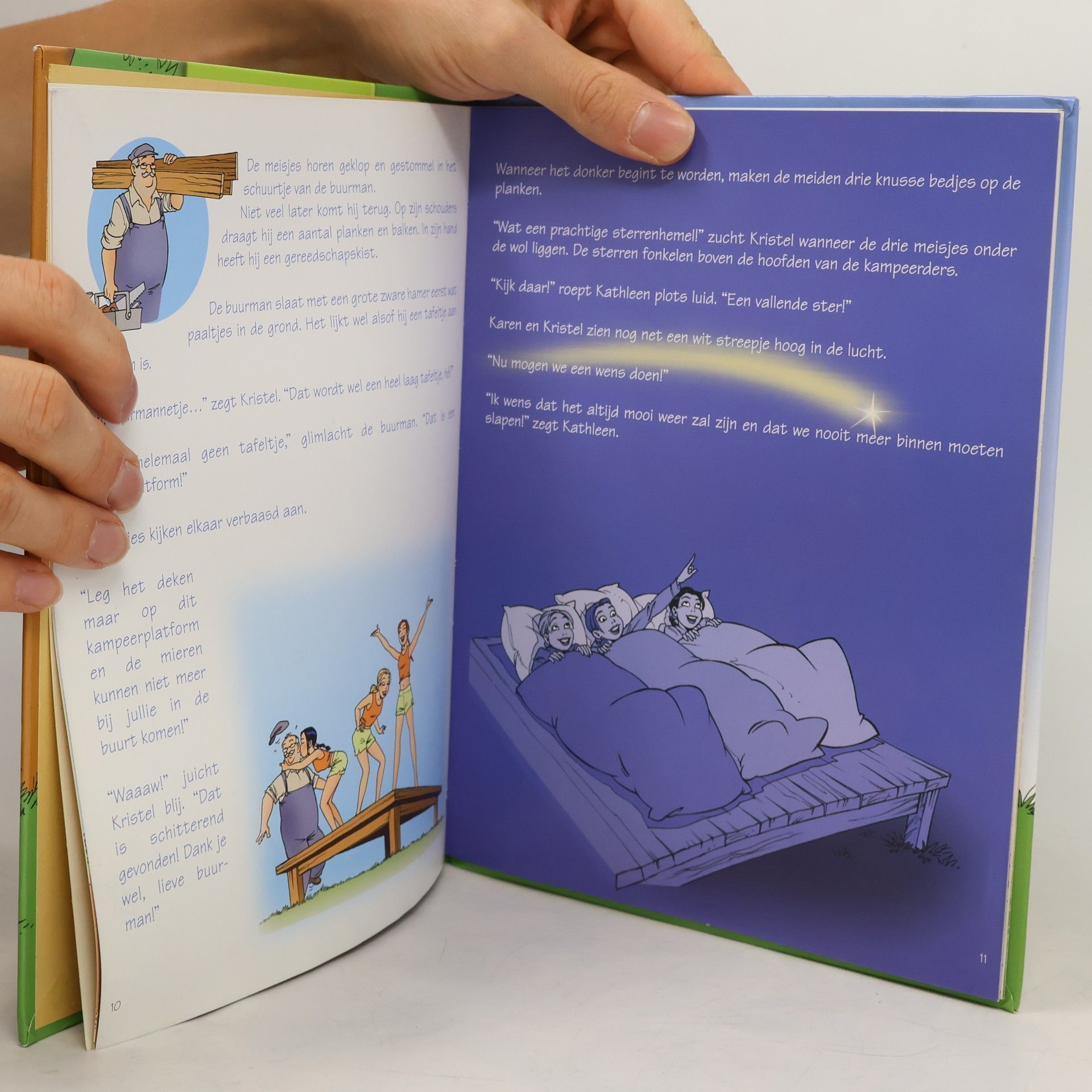 Tijdens de vakantie vervelen de meiden van K3 zich. Ze gaan kamperen in hun eigen tuin en besluiten een barbecue te houden. Prentvertelling met clichématige tekeningen in fletse kleuren. Vanaf ca. 6 jaar.