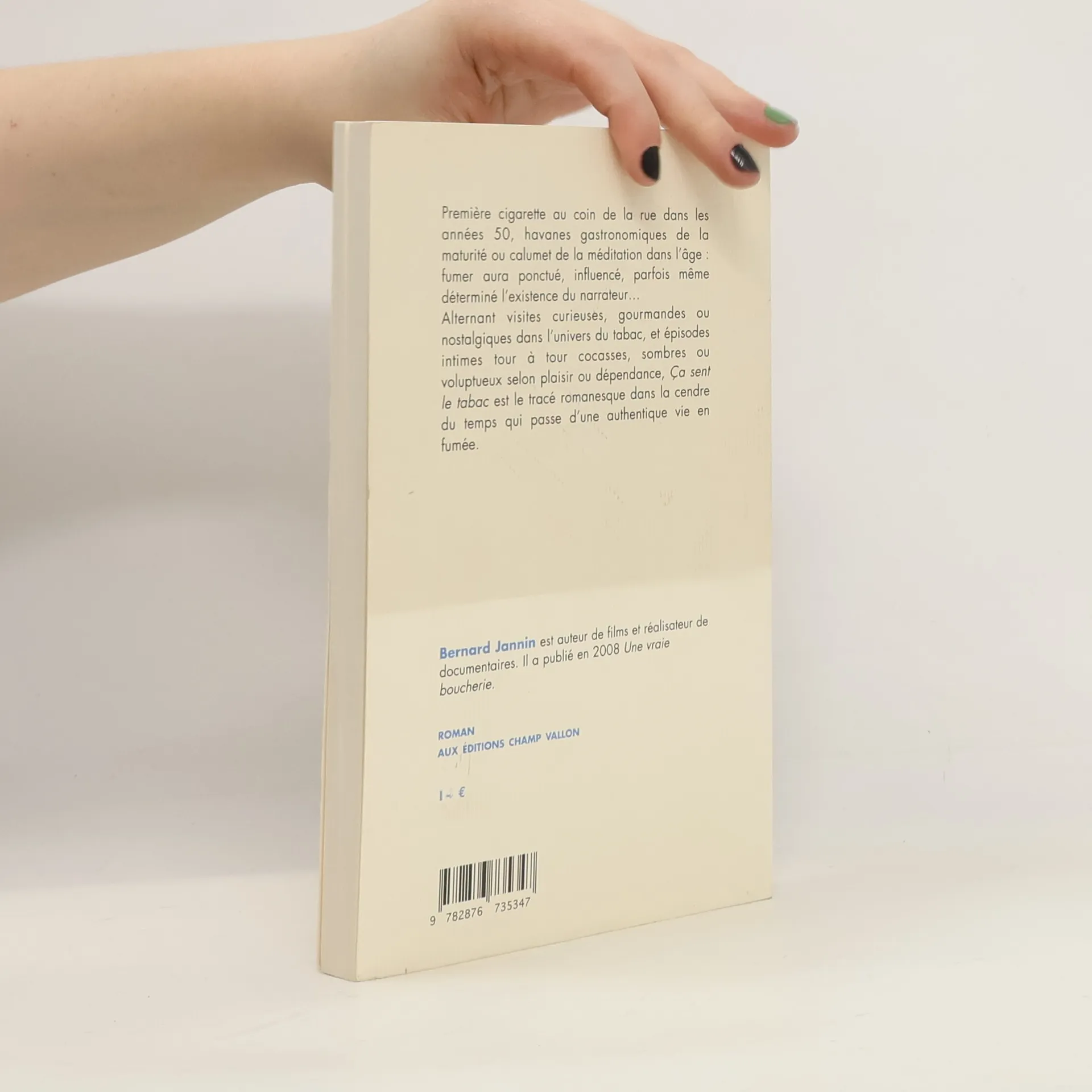Première cigarette au coin de la rue dans les années 50, havanes gastronomiques de la maturité ou calumet de la méditation dans l'âge : fumer aura ponctué, influencé, parfois même déterminé l'existence du narrateur... Alternant visites curieuses, gourmandes ou nostalgiques dans l'univers du tabac, et épisodes intimes tour à tour cocasses, sombres ou voluptueux selon plaisir ou dépendance, Ça sent le tabac est le tracé romanesque dans la cendre du temps qui passe d'une authentique vie en fumée.