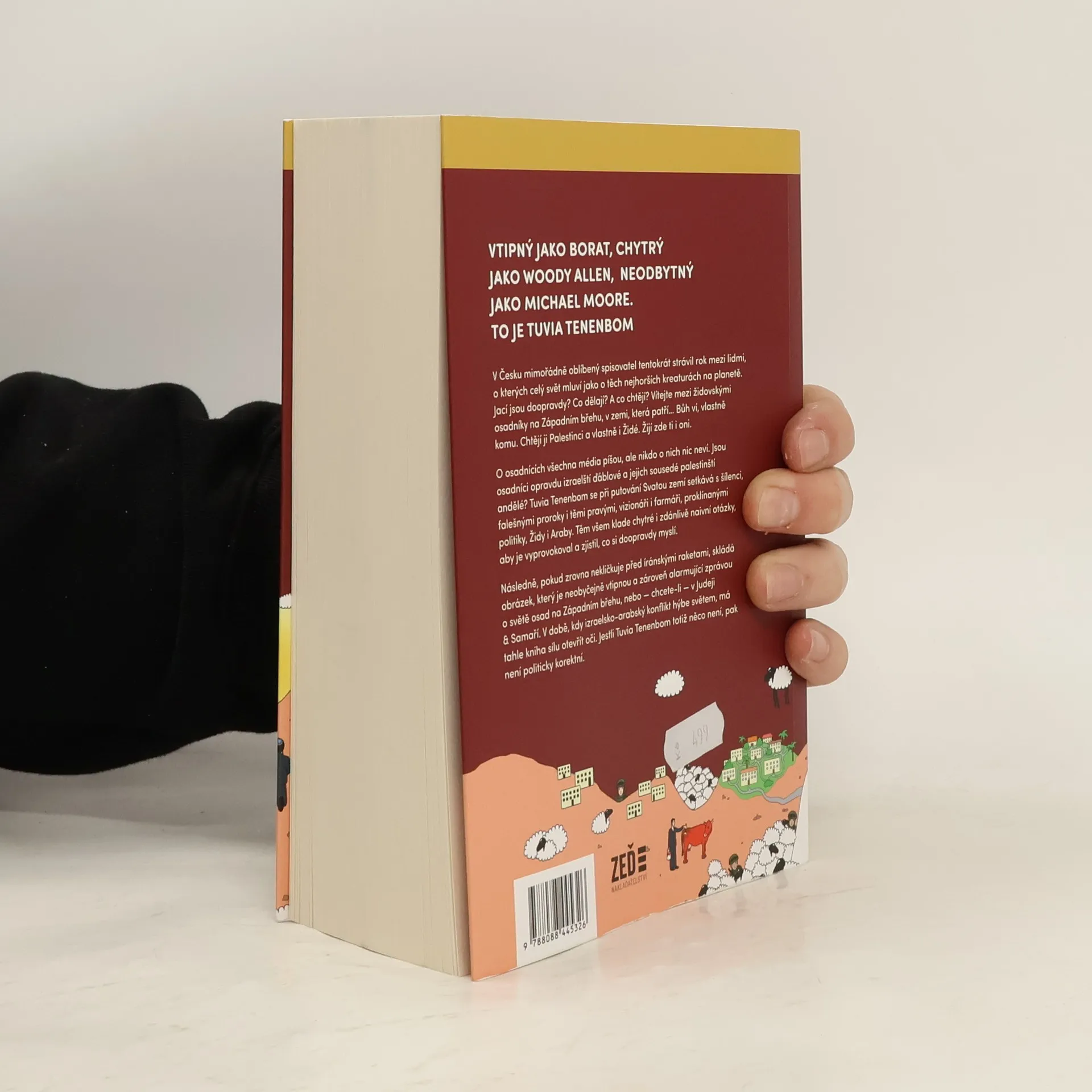 Nová kniha v Česku mimořádně oblíbeného spisovatele a rovnou ve světové premiéře. Tuvia Tenenbom dokáže odkrývat nešvary dnešního světa jako málokdo, trefně, tvrdě, ale s vtipem a nadhledem. Tentokrát strávil rok mezi lidmi, o kterých celý svět mluví jako o těch nejhorších kreaturách na planetě, kteří páchají to nejhorší zlo. Jací jsou doopravdy? Co dělají? A co chtějí? Vítejte mezi židovskými osadníky na Západním břehu, v zemi, která patří… Bůh ví, vlastně komu. Chtějí ji Palestinci a vlastně i Židé. Žijí zde ti i oni. O osadnících všechna média píšou, ale nikdo mezi nimi nestrávil takovou dobu jako Tenenbom. Jsou osadníci opravdu izraelští ďáblové a jejich sousedé palestinští andělé? Setkává se s šílenci, falešnými proroky i těmi pravými, vizionáři i farmáři, Židy i Araby. Těm všem klade chytré i zdánlivě naivní otázky, aby je vyprovokoval – což se mu často daří – a zjistil, co si doopravdy myslí. Následně, pokud zrovna nesleduje íránské rakety na obloze, skládá obrázek, ktery je neobyčejně vtipnou a zároveň alarmující zprávou o Izraeli a Palestině, o světě osad na Západním břehu, nebo – chcete-li – v Judeji & Samaří. V době, kdy izraelsko-arabský konflikt hýbe světem Tuvia Tenenbom přichází s knihou, která má sílu otevřít oči. Za vším jeho vtipem jsou totiž často překvapující i kruté pravdy. Jestli Tuvia Tenenbom totiž něco není, pak není politicky korektní.
