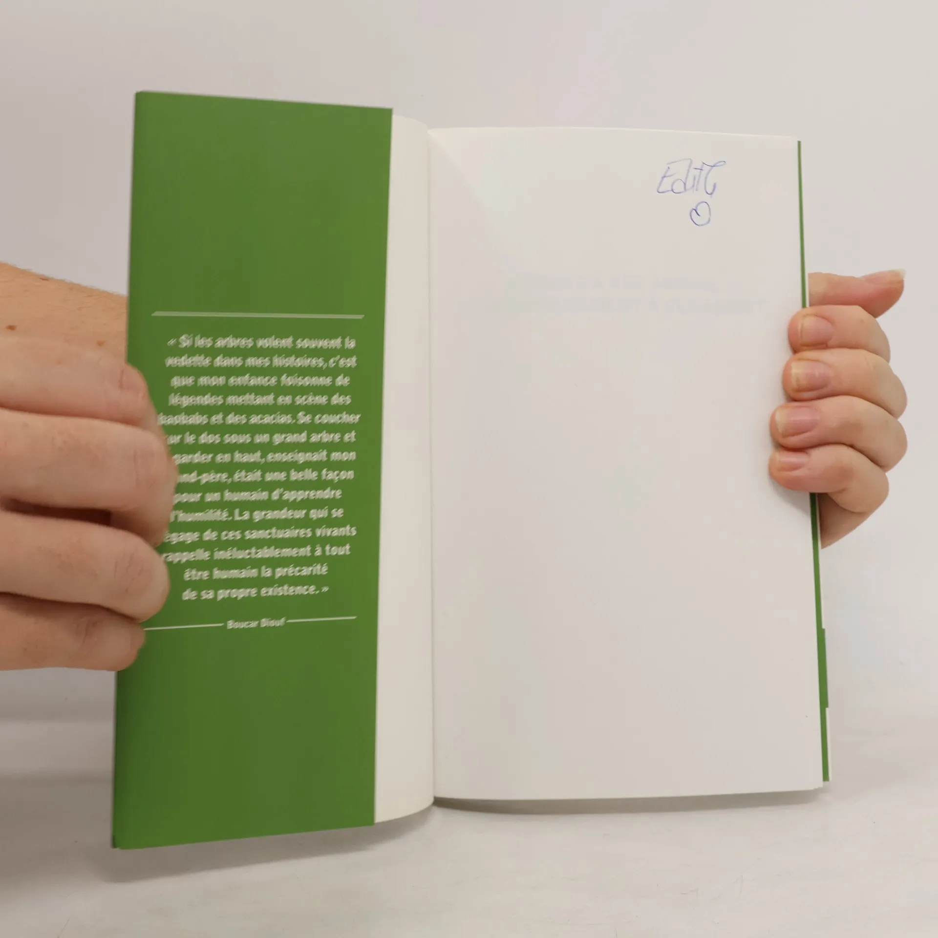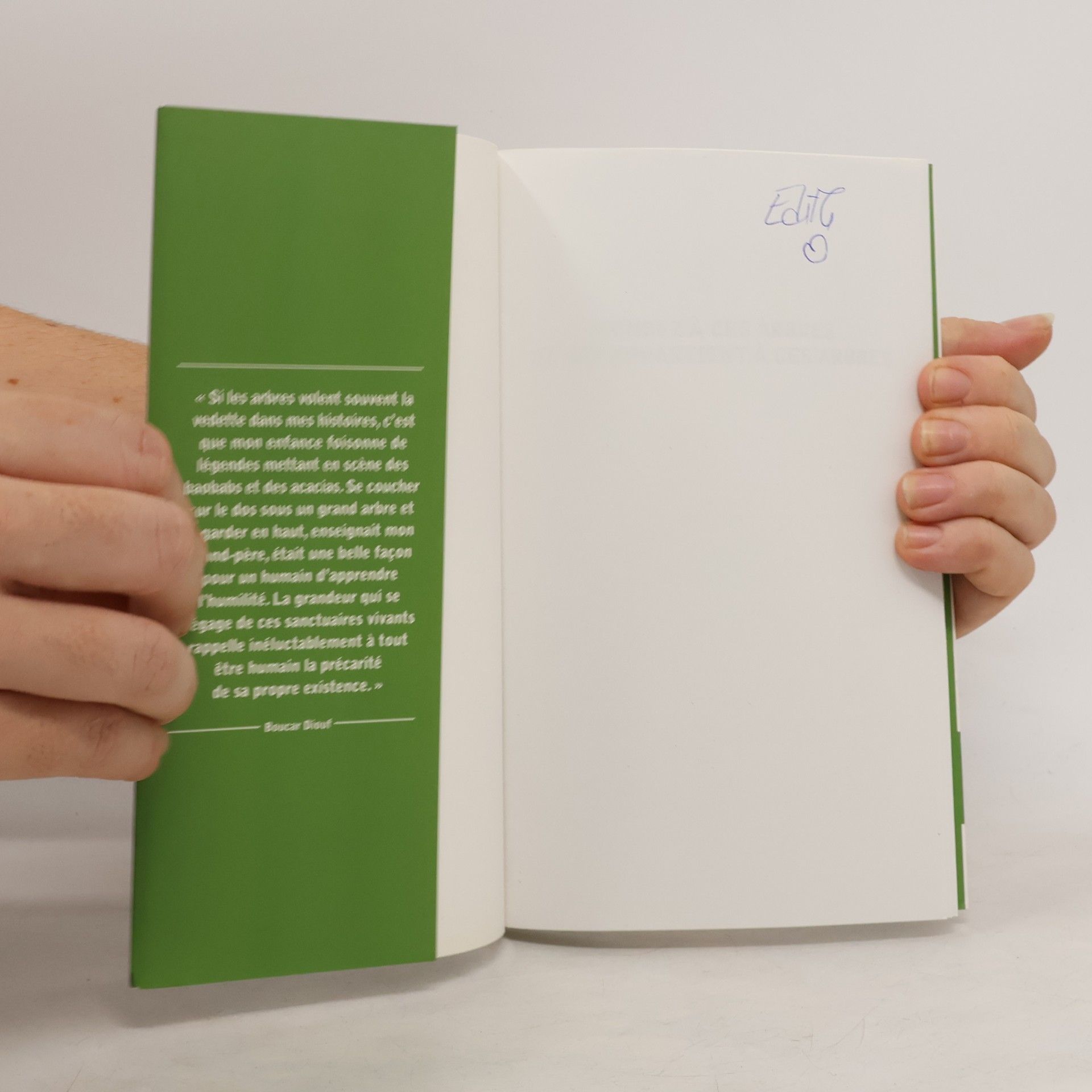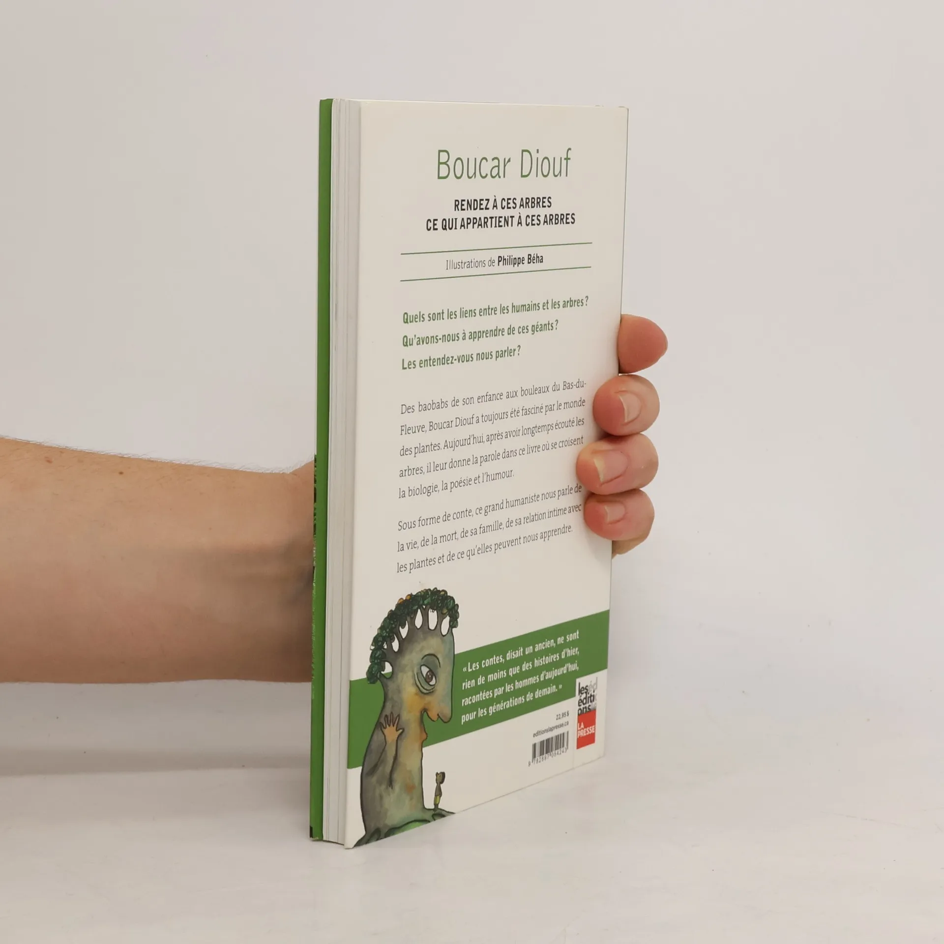 Quels sont les liens entre les humains et les arbres? Qu’avons-nous à apprendre de ces géants? Les entendez-vous nous parler?Des baobabs de son enfance aux bouleaux du Bas-du-Fleuve, Boucar Diouf a toujours été fasciné par le monde des plantes. Aujourd’hui, après avoir longtemps écouté les arbres, il leur donne la parole dans ce livre où se croisent la biologie, la poésie et l’humour.Sous forme de conte, ce grand humaniste nous parle de la vie, de la mort, de sa famille, de sa relation intime avec les plantes et de ce qu’elles peuvent nous apprendre.« Les contes, disait un ancien, ne sont rien de moins que des histoires d’hier, racontées par les hommes d’aujourd’hui, pour les générations de demain. »