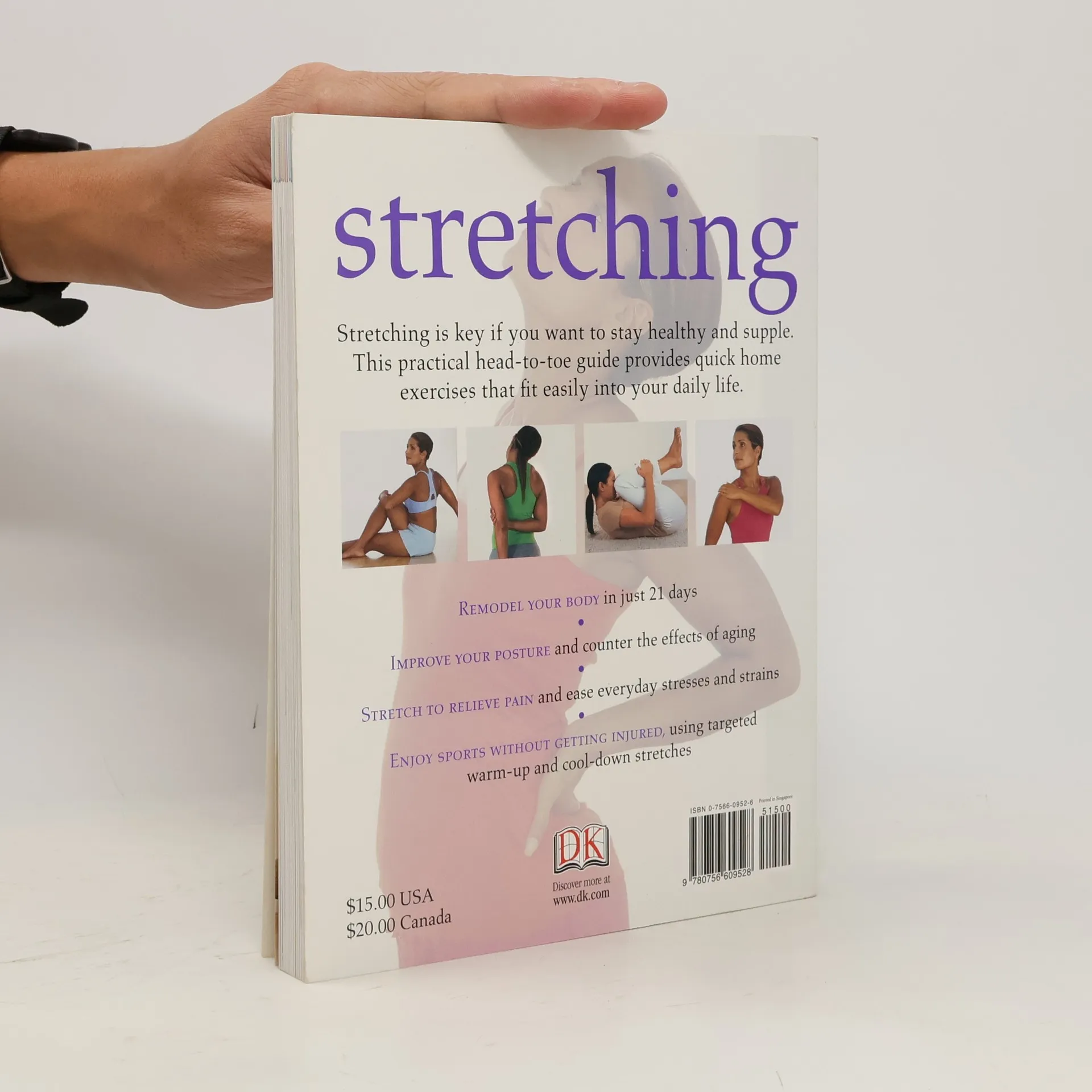 A licensed physical therapist explains how to recondition the entire body with a comprehensive, twenty-one-day program designed to enhance posture and counter the effects of aging, presenting detailed instructions and step-by-step full-color illustrations for a series of stretching exercises, including warm-up and cool-down stretches. Original.