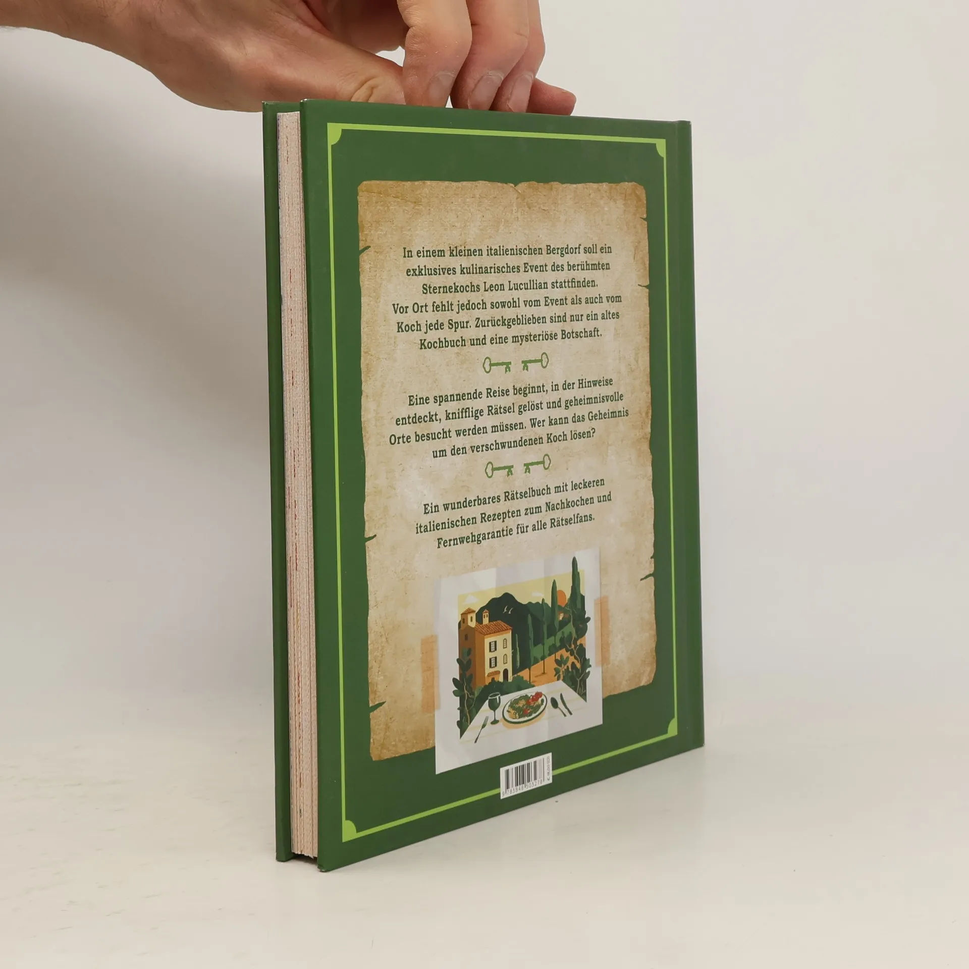 Knifflige Rätsel, eine fesselnde Geschichte und köstliche Rezepte vor der traumhaften Kulisse Italiens Kulinarisches Rätselbuch für Erwachsene mit Fernwehgarantie Versiegelte Seiten zum Auftrennen mit Logik-, Bilder- und Zahlenrätseln Mit zahlreichen köstlichen Rezepten, die la dolce vita nach Hause holen Knobeln und Genießen auf Italienisch: das perfekte Geschenk für Italienfans Folge den Spuren in einem alten italienischen Kochbuch und finde auf einer spannenden Schnitzeljagd heraus, was mit dem verschwundenen Meisterkoch geschehen ist. Das Buch enthält viele Seiten zum Auftrennen mit kniffligen Rätseln und einer packenden Geschichte, sowie zahlreiche köstliche italienische Rezepte. Löse alle Rätsel in der richtigen Reihenfolge und erfahre mehr über das Schicksal des vermissten Kochs. Ein wunderbares Rätselbuch für Erwachsene voller Spannung und leckerer Rezepte. Die perfekte Beschäftigung für Urlaubstage oder um die Wartezeit bis zur nächsten Reise nach Bella Italia zu verkürzen.