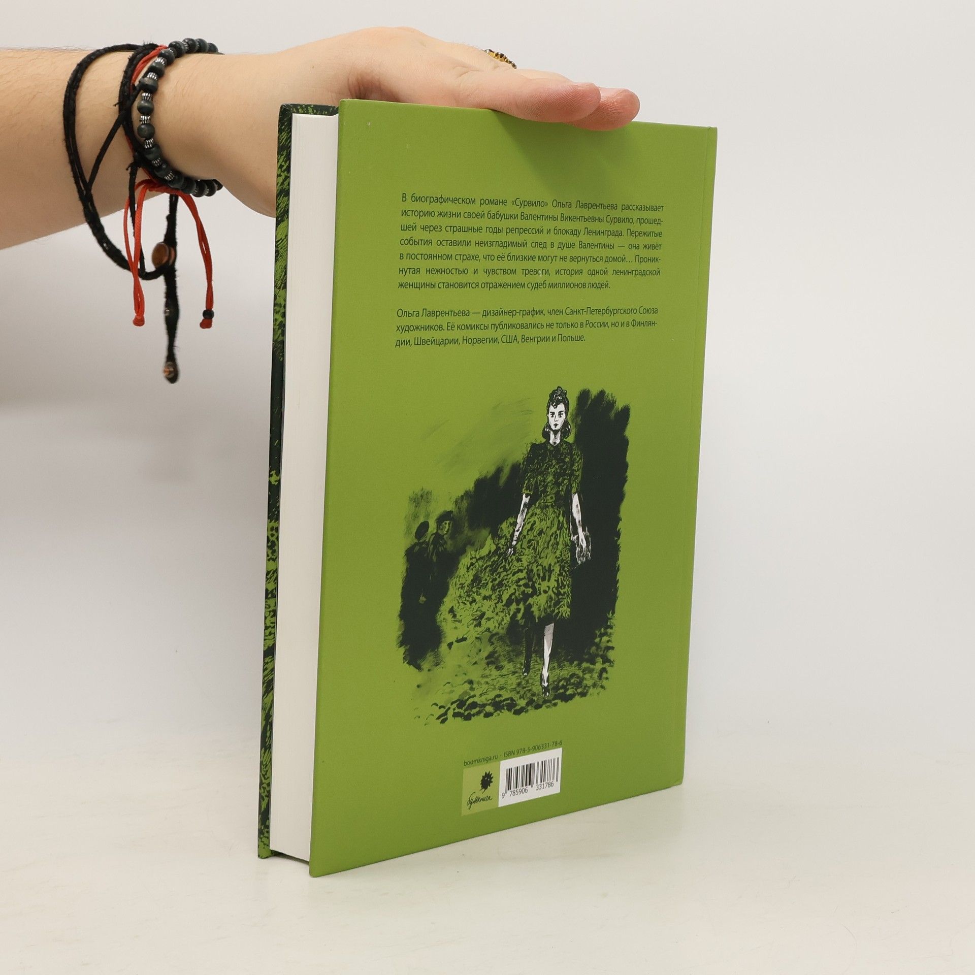 В биографическом романе «Сурвило» Ольга Лаврентьева рассказывает историю жизни своей бабушки Валентины Викентьевны Сурвило, прошедшей через страшные годы репрессий и блокаду Ленинграда. Пережитые события оставили неизгладимый след в душе Валентины — она живёт в постоянном страхе, что её близкие могут не вернуться домой… Проникнутая нежностью и чувством тревоги, история одной ленинградской женщины становится отражением судеб миллионов людей. Ольга Лаврентьева — дизайнер-график, член Санкт-Петербургского Союза художников. Её комиксы публиковались не только в России, но и в Финляндии, Швейцарии, Норвегии, США, Венгрии и Польше.