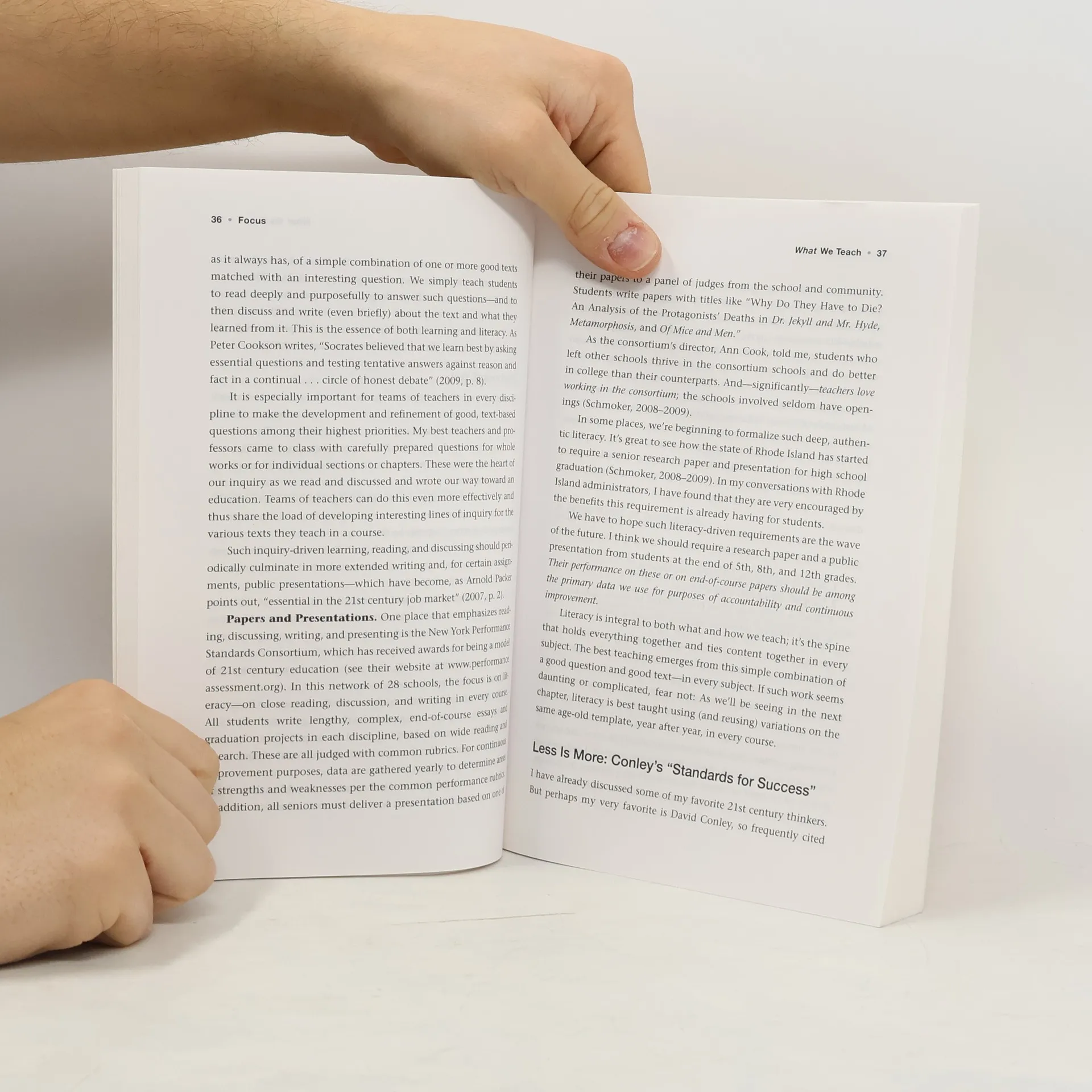 The introduction states: "[T]he only reason our schools haven't made astonishing progress in the last 30 years of "reform" is quite simple: very few schools ever implemented 'what is essential'--the most powerful, simple actions and structures that woulddramatically increase the proportion of students prepared for college or careers. What is 'essential' for schools? Three simple things: reasonably coherent curriculum (what we teach); sound lessons (how we teach); and far more purposeful reading and writing in every discipline, or authentic literacy (integral to both what and how we teach).