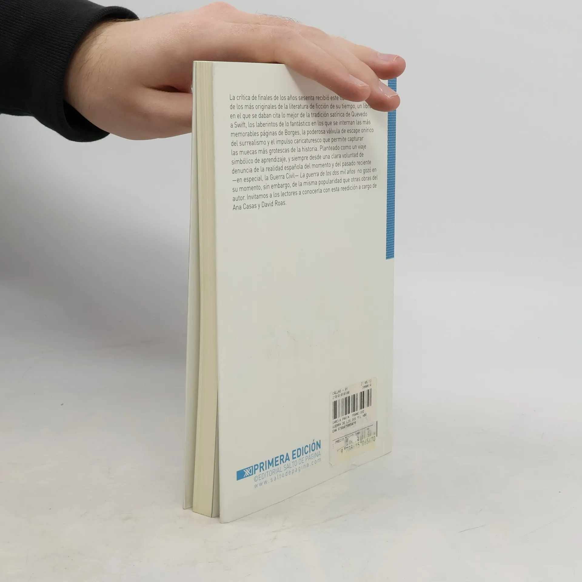 La crítica de finales de los años sesenta recibió este libro como uno de los más originales de la literatura de ficción de su tiempo, en el que se daban cita lo mejor de la tradición satírica de Quevedo a Swift, los laberintos de lo fantástico en los que se internan las más memorables páginas de Borges, la poderosa válvula de escape onírico del surrealismo y el impulso caricaturesco que permite capturar las muecas más grotescas de la historia. Planteado como un viaje simbólico de aprendizaje, y siempre desde una clara voluntad de denuncia con relación a la realidad española del momento y del pasado reciente, en especial, la Guerra Civil. La guerra de los dos mil años no gozó en su momento, sin embargo, de la misma popularidad que otras obras del autor. Invitamos a los lectores a conocerla con esta reedición a cargo de Ana Casas y David Roas.