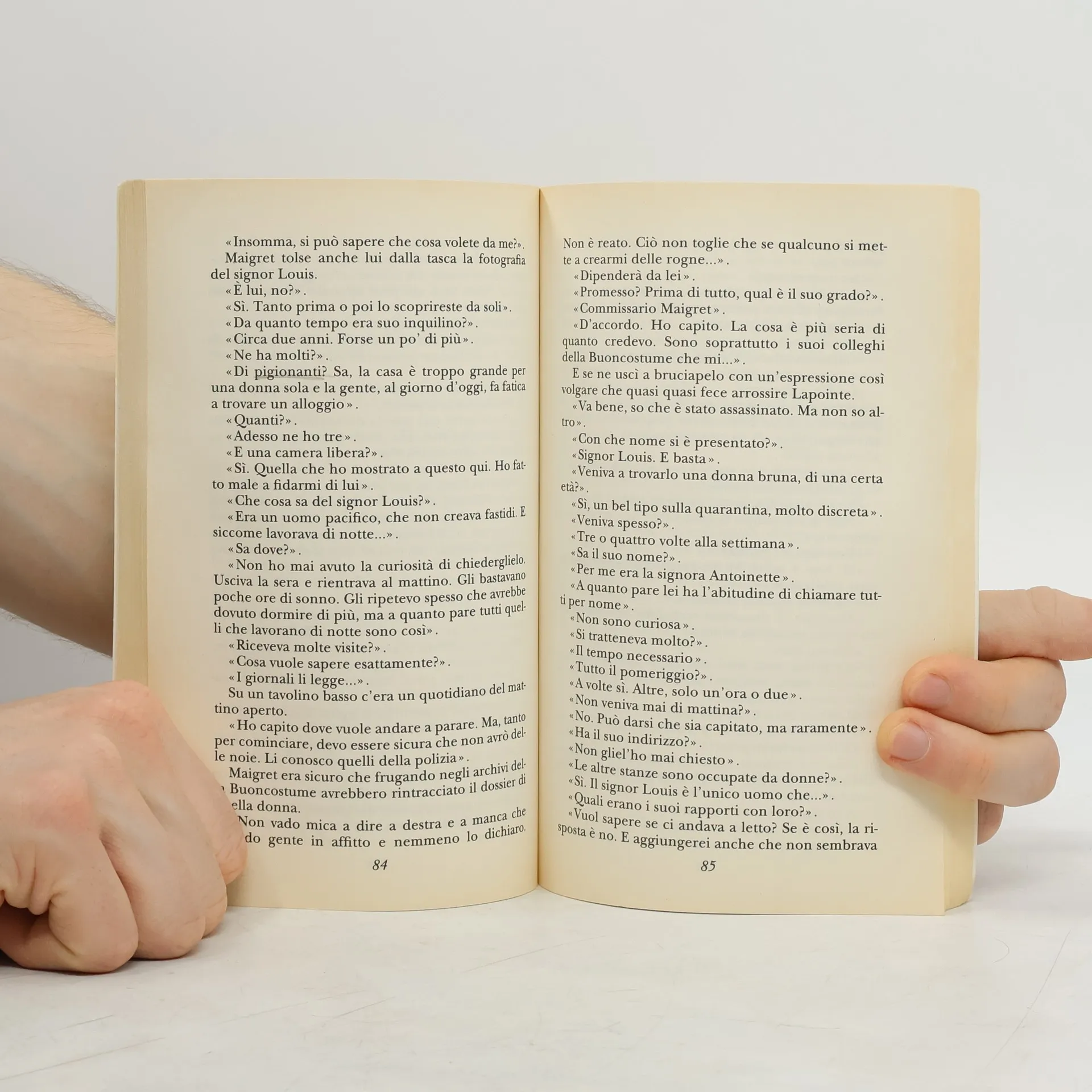 Ma c'era anche la questione delle scarpe gialle. Quelle scarpe c'entravano forse qualcosa con l'interesse che Maigret provava nei confronti del signor Louis? Il commissario non osava confessarlo a se stesso. Anche lui, per anni, aveva sognato di indossare delle scarpe color becco d'oca. All'epoca erano di moda, insieme a quei cappotti color beigiolino talmente corti da sembrare giacche da camera. Una volta, appena sposato, aveva deciso di comprarsi delle scarpe gialle, ma già solo a entrare nel negozio si era quasi sentito arrossire. Guarda caso, era proprio il negozio in boulevard Saint Martin, di fronte al Théâtre de l'Ambigu. Non aveva osato metterle subito, e quando a casa aveva scartato il pacchetto davanti alla moglie, la signora Maigret l'aveva guardato lasciandosi scappare una risatina. «Non avrai per caso intenzione di metterle?». Non se le mise mai. Sua moglie andò a restituirle al negozio, con la scusa che gli facevano male.