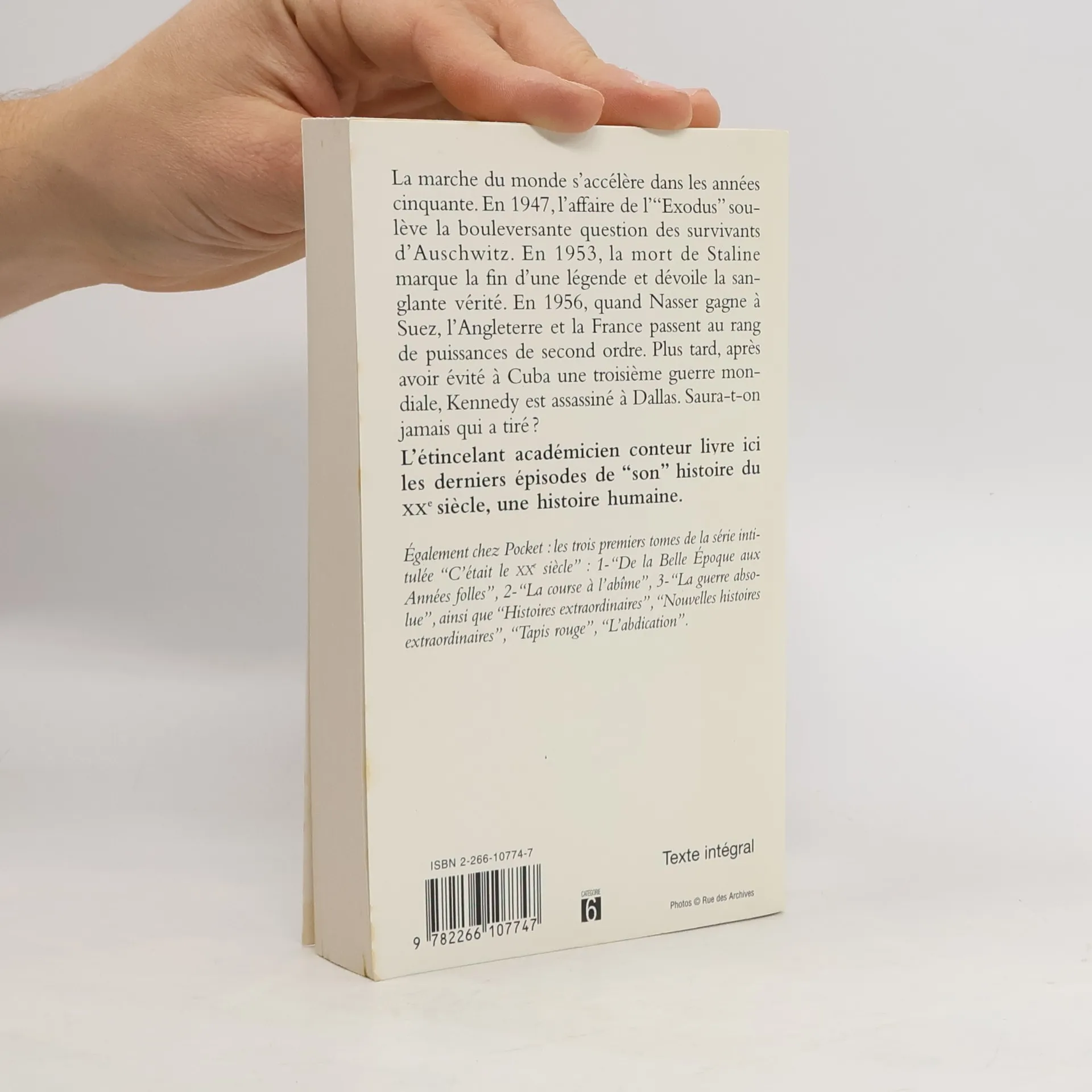 Entre 1947 et 1963, sur fond de guerre froide entre les deux grands vainqueurs de 1945, le monde a connu plusieurs épisodes tragiques dont les échos résonnent encore aujourd'hui. Du sort des réfugiés de l'Exodus au meurtre de Kennedy, en passant par l'insurrection hongroise de 1956 ou le 13 mai 1958, Alain Decaux a choisi de nous raconter dans le détail dix de ces événements. Tous présentent l'intensité dramatique qui leur a conféré immédiatement le statut de faits "historiques". Tous ont également eu des ressorts ou des dénouements occultes, ce qui justifie pleinement les témoignages directs collectés par l'auteur et insérés dans le récit. Si le mystère demeure parfois – l'identité des commanditaires de l'assassinat de Kennedy, par exemple –, l'effort de vérité porte souvent ses fruits. Dès les premières lignes, le lecteur de ce quatrième volet du XXe siècle d'Alain Decaux est captivé par la mise en intrigue que le génial conteur maîtrise si bien.