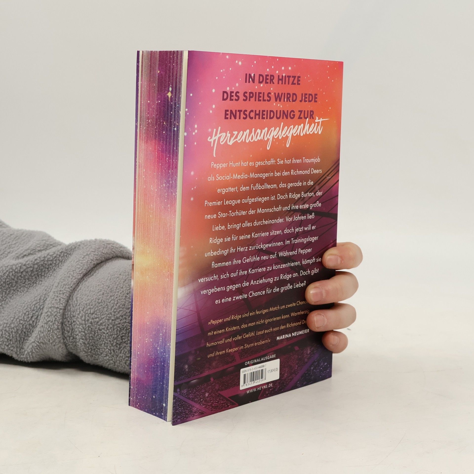 In der Hitze des Spiels wird jede Entscheidung zur Herzensangelegenheit (Pepper & Ridge) Pepper Hunt hat es geschafft: Sie hat ihren Traumjob als Social-Media-Managerin bei den Richmond Deers ergattert, das Fußballteam, das gerade in die Premier League aufgestiegen ist. Doch Ridge Burton, der neue Star-Torhüter der Mannschaft und ihre erste große Liebe, bringt alles durcheinander. Vor Jahren ließ Ridge sie für seine Karriere sitzen, doch jetzt will er unbedingt ihr Herz zurückzugewinnen. Im Trainingslager flammen ihre Gefühle neu auf. Während Pepper versucht, sich auf ihre Karriere zu konzentrieren, kämpft sie vergebens gegen die Anziehung zu Ridge an. Doch gibt es eine zweite Chance für die große Liebe?