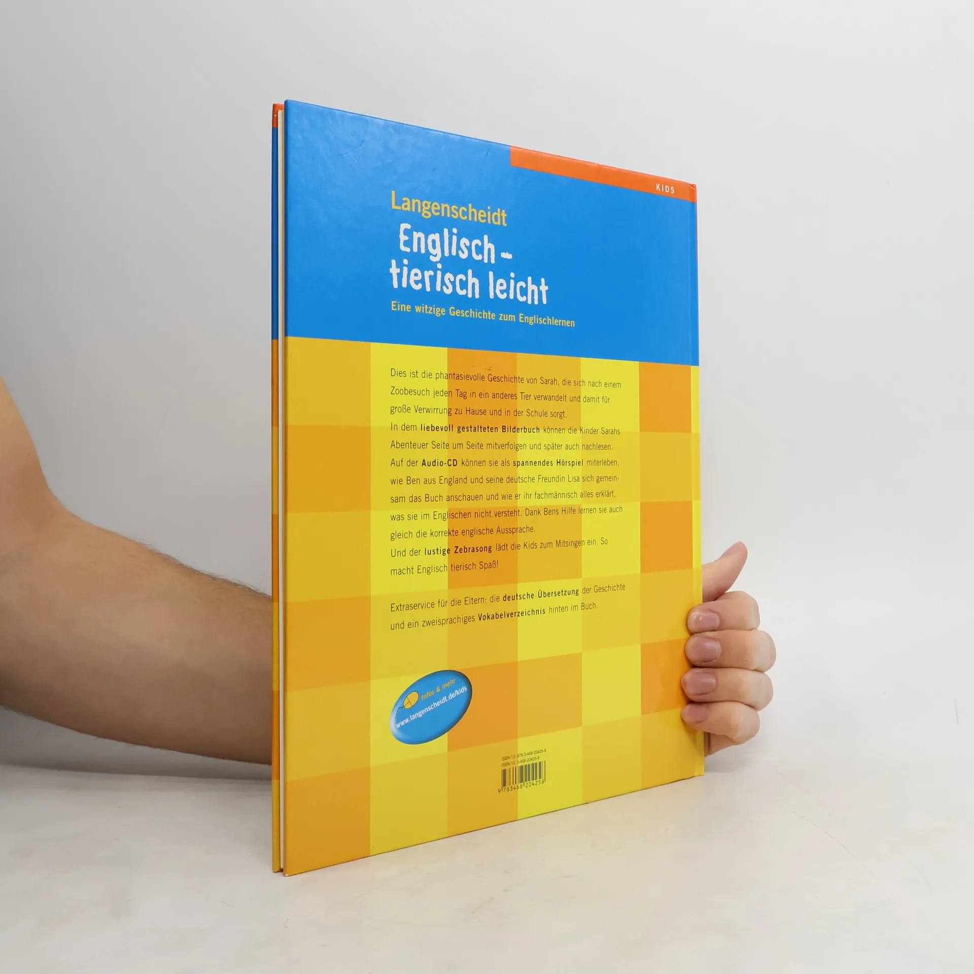 Nach einem Zoobesuch verwandelt sich Sarah jeden Tag in ein anderes Tier. Mit dieser phantasievollen Geschichte lernen Kinder Englisch wie von selbst. Liebevoll gestaltetes Bilderbuch zum Anschauen; spannendes Hörspiel zum Anhören der Geschichte; ein lustiger Song zum Mitsingen; Extraservice für die Eltern - deutsche Übersetzung und Vokabelverzeichnis.