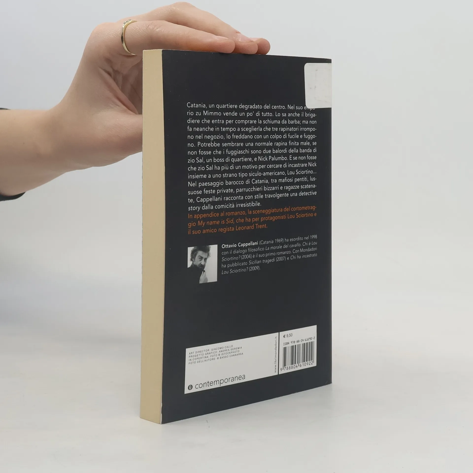 Catania, un quartiere degradato del centro. Nel suo emporio zu Mimmo vende un po' di tutto. Lo sa anche il brigadiere che entra per comprare la schiuma da barba; ma non fa neanche in tempo a sceglierla che tre rapinatori irrompono nel negozio, lo freddano con un colpo di fucile e fuggono. Potrebbe sembrare una normale rapina finita male, se non fosse che i fuggiaschi sono due balordi della banda di zio Sal, un boss di quartiere, e Nick Palumbo. E se non fosse che zio Sal ha più di un motivo per cercare di incastrare Nick insieme a uno strano tipo siculo-americano, Lou Sciortino... Nel paesaggio barocco di Catania, tra mafiosi pentiti, lussuose feste private, parrucchieri bizzarri e ragazze scatenate, Cappellani racconta con stile travolgente una detective story dalla comicità irresistibile. In appendice al romanzo, la sceneggiatura del cortometraggio <i>My name is Sid</i>, che ha per protagonisti Lou Sciortino e il suo amico regista Leonard Trent.