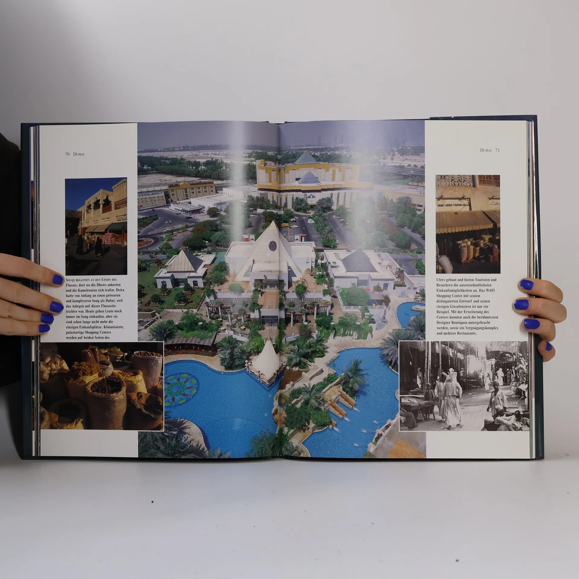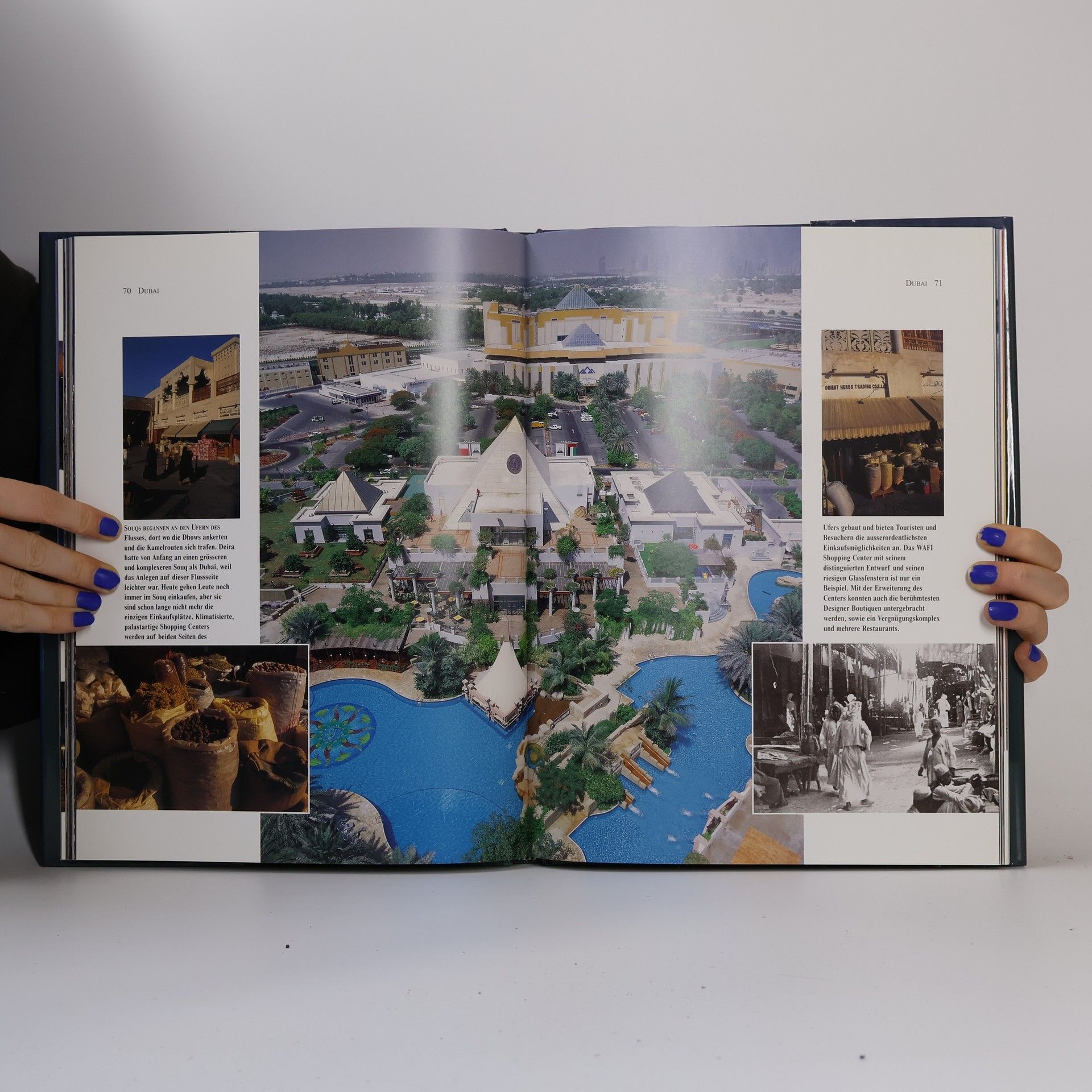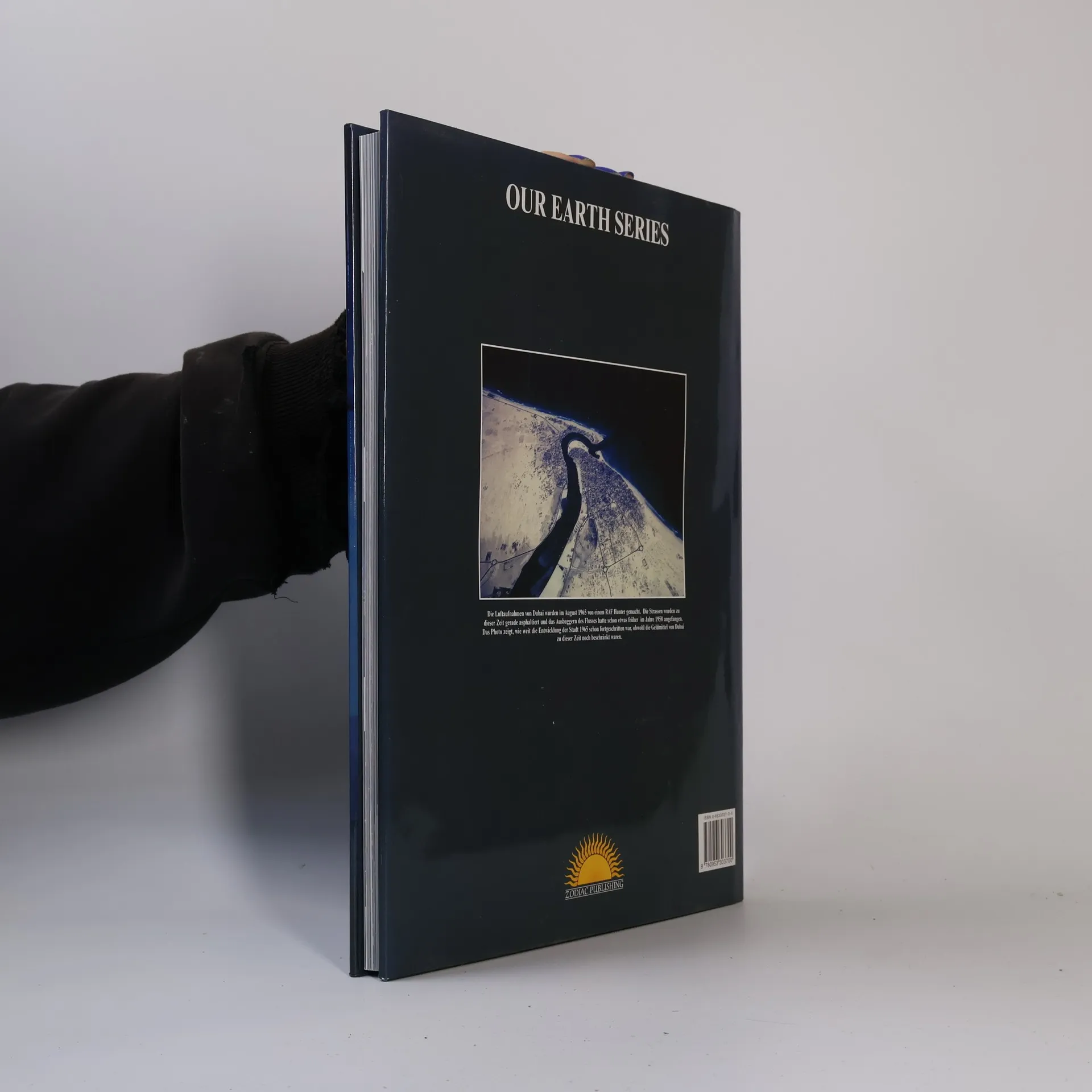 "Jetzt & Dann Dubai", the German edition of "Now & Then - Dubai", is a large format, coffee table book showing the development of Dubai over the past 100 years using old photographs compared with new photographs taken from a similar angle. The modern photographs, taken using a 6x7 Mamiya RZ camera, are dramatic and colorful, especially compared with the old monochrome pictures shown on the same page. There are 14,000 supporting words of descriptive text. The foreword is by HH Sheikh Ahmed, the Chairman of Emirates Airline.