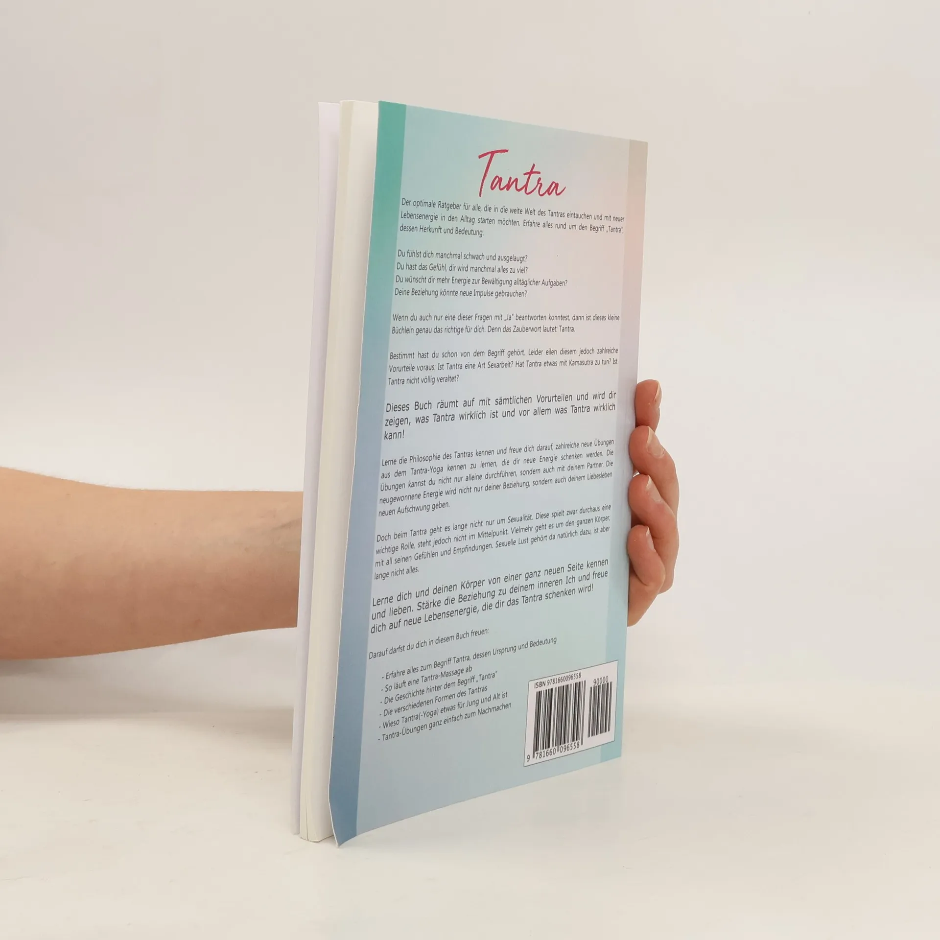 Tantra Der optimale Ratgeber für alle, die in die weite Welt des Tantras eintauchen und mit neuer Lebensenergie in den Alltag starten möchten. Erfahre alles rund um den Begriff ,,Tantra", dessen Herkunft und Bedeutung. Du fühlst dich manchmal schwach und ausgelaugt? Du hast das Gefühl, dir wird manchmal alles zu viel? Du wünscht dir mehr Energie zur Bewältigung alltäglicher Aufgaben? Deine Beziehung könnte neue Impulse gebrauchen? Wenn du auch nur eine dieser Fragen mit ,,Ja" beantworten konntest, dann ist dieses kleine Büchlein genau das richtige für dich. Denn das Zauberwort lautet: Tantra. Bestimmt hast du schon von dem Begriff gehört. Leider eilen diesem jedoch zahlreiche Vorurteile voraus: Ist Tantra eine Art Sexarbeit? Hat Tantra etwas mit Kamasutra zu tun? Ist Tantra nicht völlig veraltet? Dieses Buch räumt auf mit sämtlichen Vorurteilen und wird dir zeigen, was Tantra wirklich ist und vor allem was Tantra wirklich kann! Lerne die Philosophie des Tantras kennen und freue dich darauf, zahlreiche neue Übungen aus dem Tantra-Yoga kennen zu lernen, die dir neue Energie schenken werden. Die Übungen kannst du nicht nur alleine durchführen, sondern auch mit deinem Partner. Die neugewonnene Energie wird nicht nur deiner Beziehung, sondern auch deinem Liebesleben neuen Aufschwung geben. Doch beim Tantra geht es lange nicht nur um Sexualität. Diese spielt zwar durchaus eine wichtige Rolle, steht jedoch nicht im Mittelpunkt. Vielmehr geht es um den ganzen Körper, mit all seinen Gefühlen und Empfindungen. Sexuelle Lust gehört da natürlich dazu, ist aber lange nicht alles. Lerne dich und deinen Körper von einer ganz neuen Seite kennen und lieben. Stärke die Beziehung zu deinem inneren Ich und freue dich auf neue Lebensenergie, die dir das Tantra schenken wird! Darauf darfst du dich in diesem Buch freuen: Erfahre alles zum Begriff Tantra, dessen Ursprung und Bedeutung So läuft eine Tantra-Massage ab Die Geschichte hinter dem Begriff ,,Tantra" Die verschiedenen Formen des Tantras Wieso Tantra(-Yoga) etwas für Jung und Alt ist Tantra-Übungen ganz einfach zum Nachmachen ...na? Bist du nun neugierig geworden? Dann nichts wie los! Alles was du brauchst, um in die Welt des Tantras einzutauchen, trägst du bereits in dir. Dieses Buch wird dir dabei helfen, die Energie, die bereits in dir steckt, zu befreien. Ich freue mich auf dich!
