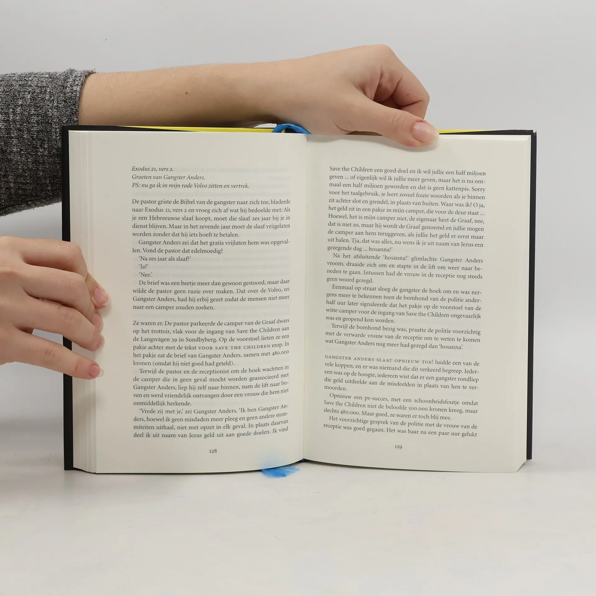 Gangster Anders en zijn vrienden: Gangster Anders, vers uit de gevangenis; Johanna, een pastor, recent uit haar kerk gezet; en Per, receptionist in het hotel waar ze verblijven, de kleinzoon van een geruïneerde miljonair. Een snood plan smeden ze: Anders moet goedbetaalde vuile klusjes gaan opknappen voor de Zweedse onderwereld, de pastor en de receptionist worden zijn strategische partners. Gaandeweg blijkt Gangster Anders maar matig geschikt voor de job en dan begint hij zich op een dag in de Bijbel te verdiepen. Hij besluit een kerk te stichten, de Kerk van Anders, met als motto: geven is beter dan nemen. Daar zijn Johanna en Per het maar half mee eens. Met inmiddels de halve onderwereld achter zich aan moeten de andere twee als de bliksem een nieuw, lucratief plan verzinnen ... Jonas Jonasson, bekend van zijn hilarische roman De 100-jarige man die uit het raam klom en verdween, schreef een eigentijds avontuur dat zich dit keer volledig afspeelt in het heden en in Zweden.