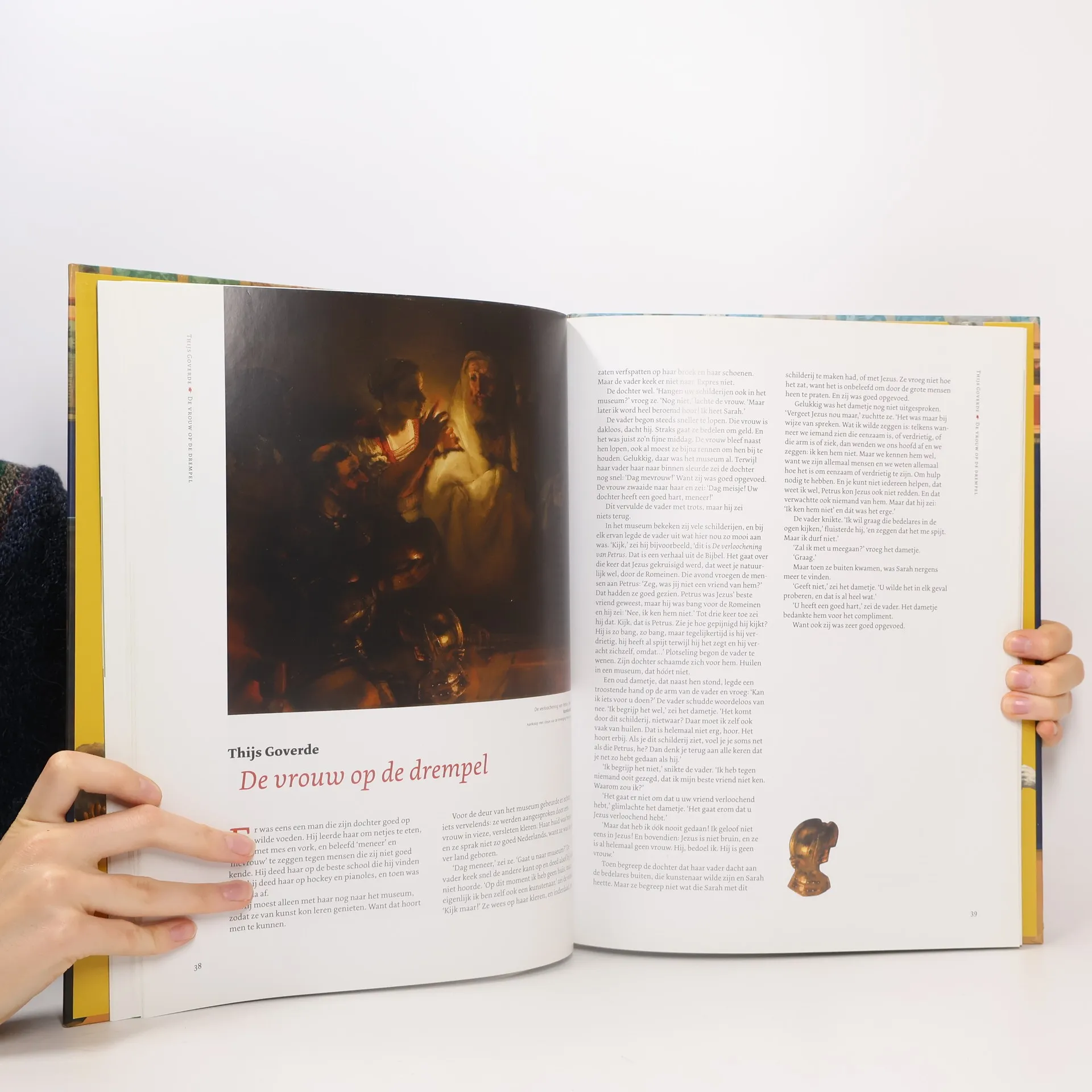 Voor het Rembrandtjaar 2019 schreven zeven kinderboekenschrijvers 24 verhalen bij meesterwerken van één van onze grootste kunstenaars aller tijden. Natuurlijk is er bij elk schilderij een officieel kunsthistorisch verhaal. Maar bij de beste kunst ga je zelf kijken en maak je je eigen associaties. Hij laat ons onze verhalen verzinnen bij zijn werk. Inspirerend voor kinderen en zeker ook voor volwassenen. Volgens Rembrandt moest je zijn schilderijen in het felle zonlicht en van afstand bekijken. De schrijvers van dit boek zetten 25 schilderijen, etsen en tekeningen van Rembrandt in een nieuw, fel licht en nemen die afstand om verhalen te schrijven. Uitgegeven in samenwerking met het Rijksmuseum.