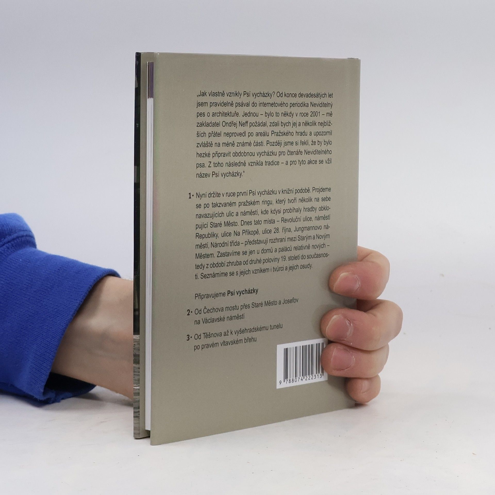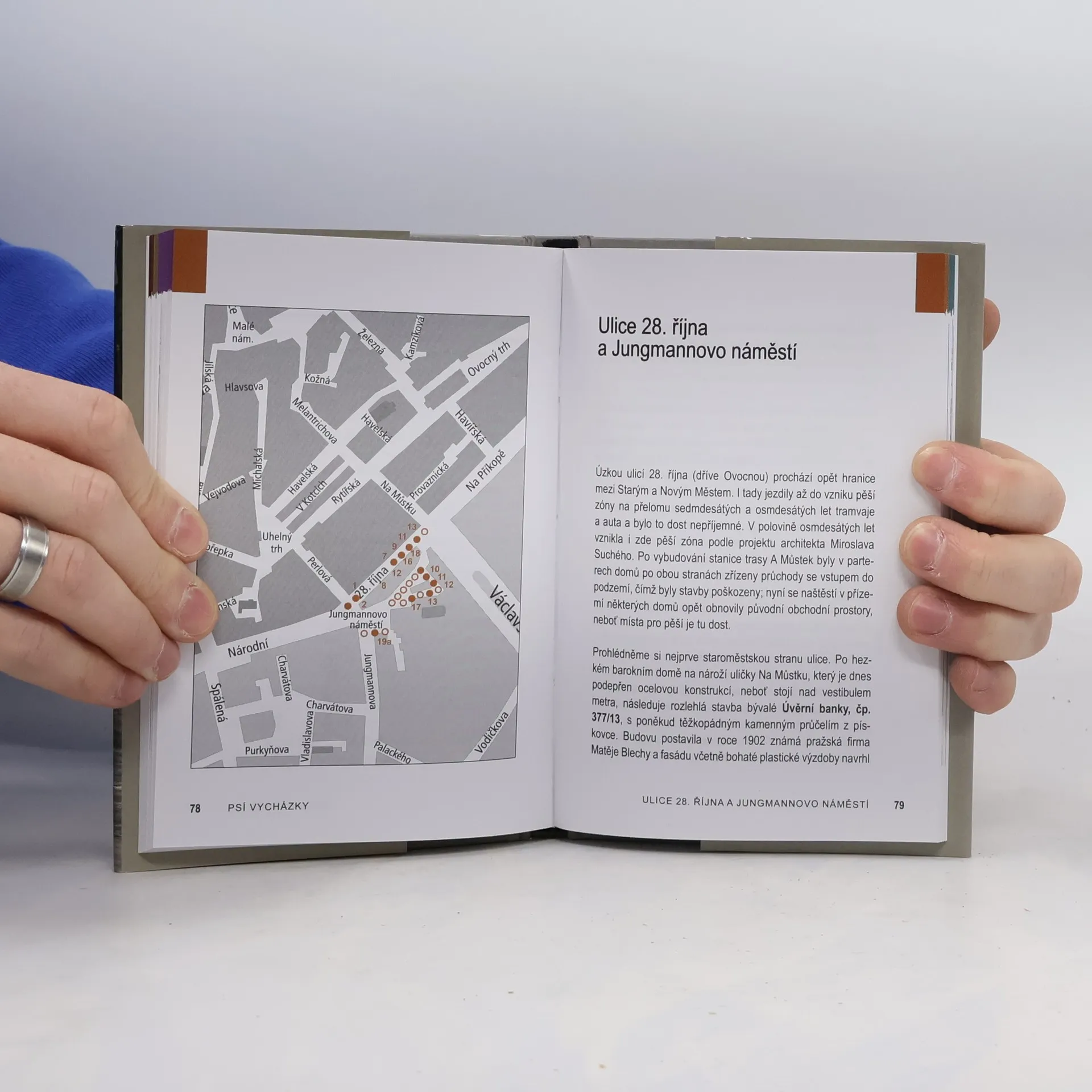 Projdeme se po takzvaném pražském ringu, který tvoří několik na sebe navazujících ulic a náměstí, kde kdysi probíhaly hradby obklopující Staré Město. Psí vycházky vznikly původně pro čtenáře internetového periodika Neviditelný pes, kam autor od konce devadesátých let pravidelně psával články o moderní architektuře. Z vycházky pro čtenáře se stala tradice a pro tyto akce se vžil název Psí vycházky. V této první Psí vycházce po pražském ringu projdeme Revoluční ulicí, náměstím Republiky, ulicí Na Příkopě, ulicí 28. října, Jungmannovým náměstím a Národní třídou. Zastavíme se jen u domů a paláců relativně nových - tedy z období zhruba od druhé poloviny 19. století do současnosti. Seznámíme se s jejich vznikem, tvůrci a jejich osudy.