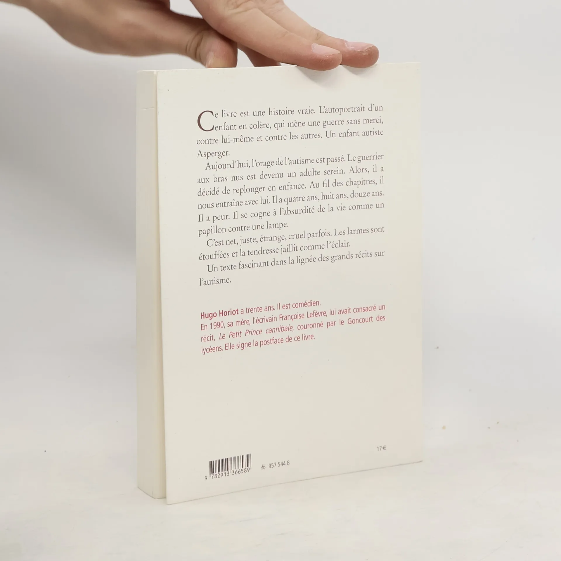 Ce livre est une histoire vraie. L'autoportrait d'un enfant en colA]re, qui mA]ne une guerre sans merci, contre lui-mAame et contre les autres. Un enfant autiste Asperger. Aujourd'hui, l'orage de l'autisme est passA(c). Le guerrier aux bras nus est devenu un adulte serein. Alors, il a dA(c)cidA(c) de replonger en enfance. Au fil des chapitres, il nous entraA(R)ne avec lui. Il a quatre ans, huit ans, douze ans. Il a peur. Il se cogne A l'absurditA(c) de la vie comme un papillon contre une lampe. C'est net, juste, A(c)trange, cruel parfois. Les larmes sont A(c)touffA(c)es et la tendresse jaillit comme l'A(c)clair. Un texte fascinant dans la lignA(c)e des grands rA(c)cits sur l'autisme.