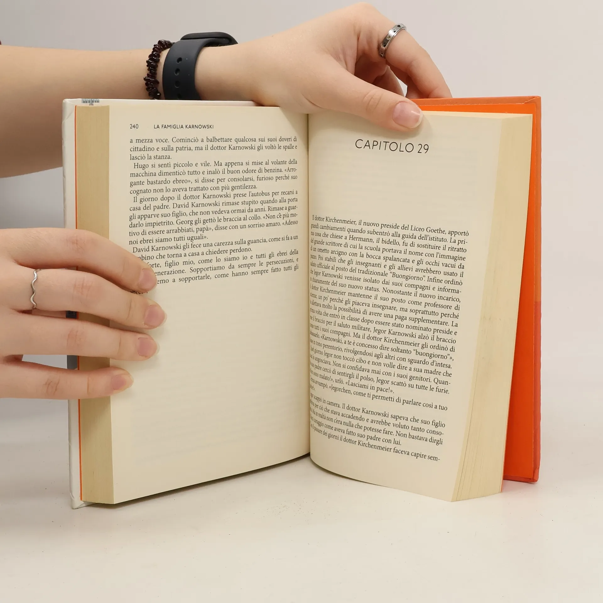 Con un'introduzione all'autore di Moni Ovadia Edizione integrale Tre generazioni di ebrei, completamente assimilati alla società tedesca, si susseguono sotto la crescente e minacciosa ombra del nazismo. L’intesa saga familiare si apre con David, il patriarca, che lascia la Polonia per trasferirsi nella civilissima Berlino e si considera più tedesco dei tedeschi stessi; il figlio Georg, che ha imparato sin da piccolo a comportarsi «da ebreo in casa e da uomo di mondo fuori», diventa un famoso e richiestissimo medico, salvo poi perdere tutto, ricchezze, professione e ogni possibile speranza, a causa delle orribili leggi razziali. La storia di Jegor, il suo giovane figlio, dilaniato dall’odio che prova per la sua stessa identità di ebreo, conclude la parabola dei Karnowski. Affresco vivido e commovente della società ebraica in Germania tra l'inizio del secolo scorso e gli anni a cavallo delle due guerre mondiali, "La famiglia Karnowski" è riconosciuto come un grande classico della letteratura del Novecento.