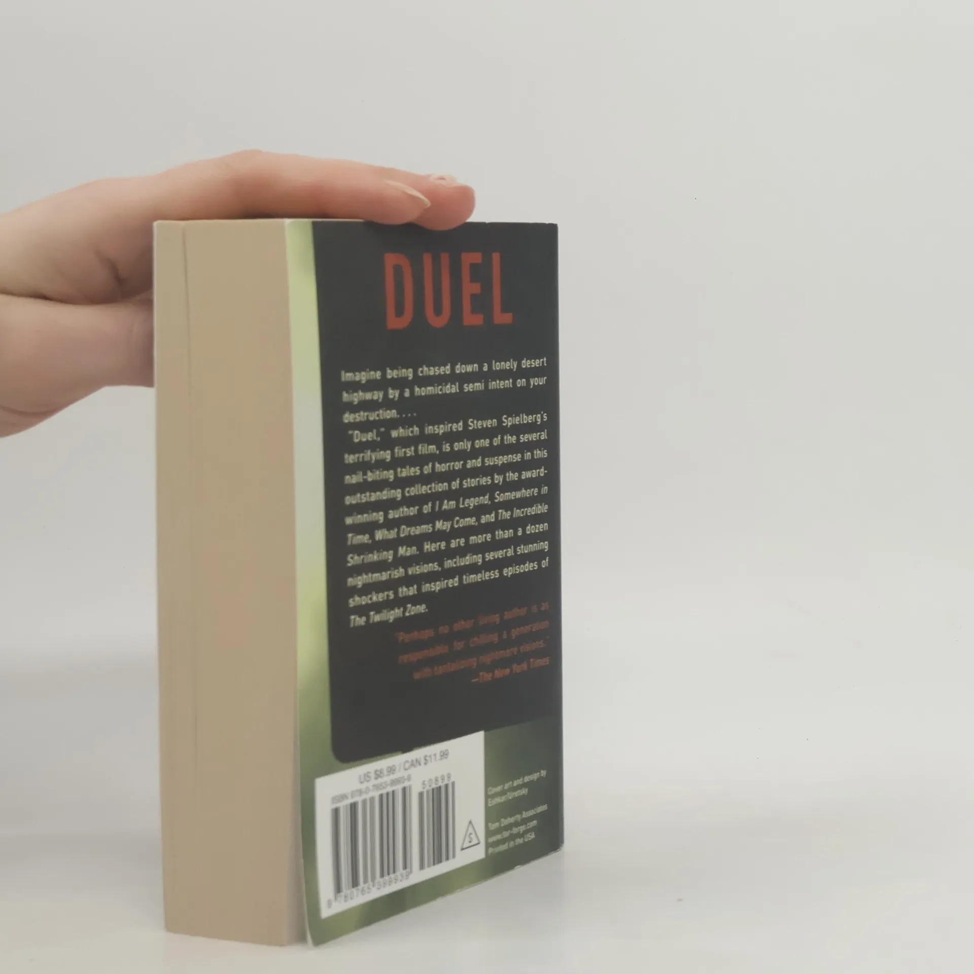 Terror stories Remember that murderous semi chasing a driver down a lonely stretch of desert highway? <i>Duel</i>, Stephen Spielberg's terrifying first film, was adapted by Richard Matheson from his nail-biting short story of the same name. But "Duel" is only one of the many classic tales in this outstanding collection of stories by the award-winning author of <i>I Am Legend</i>, <i>Somewhere in Time</i>, <i>What Dreams May Come</i>, and <i>The Incredible Shrinking Man</i>. Here are over a dozen unforgettable tales of horror and suspense, including several stunning shockers that inspired timeless episodes of <i>The Twilight Zone</i>.