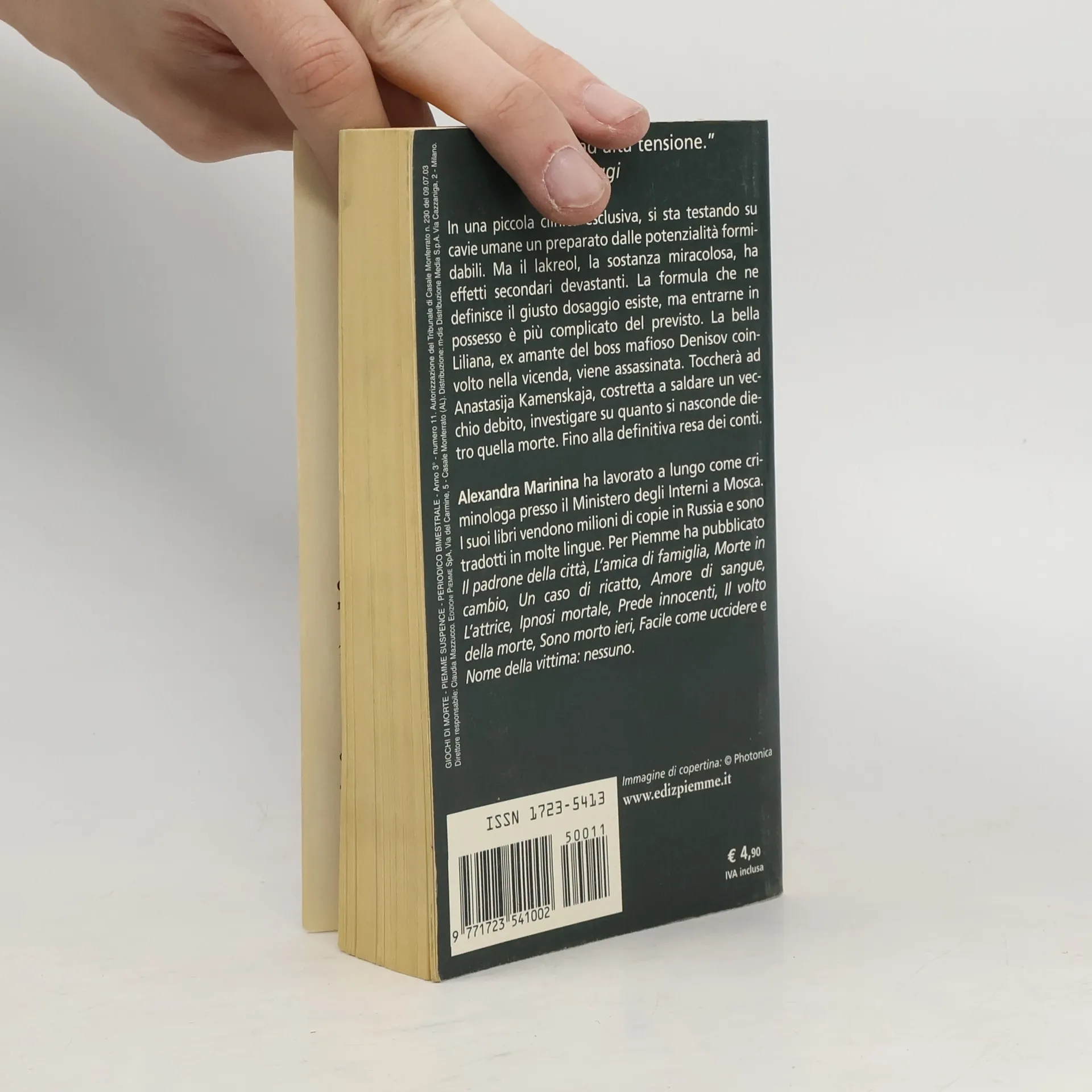 In una piccola clinica esclusiva, alcuni scienziati stanno testando su uomini e donne inconsapevoli un nuovo preparato in grado di sollecitare al massimo l'attività intellettuale. Ma il lakreol, questo il nome della sostanza miracolosa, ha effetti secondari devastanti, letali. Definirne il giusto dosaggio è questione di tempo e di denaro. La morte di Liliana, ex amante del boss mafioso Denisov, mette in moto indagini che vanno ben oltre il dipartimento della polizia di Mosca. Anche l'investigatrice Anastasia Kamenskaja si trova costretta a pagare il suo debito.