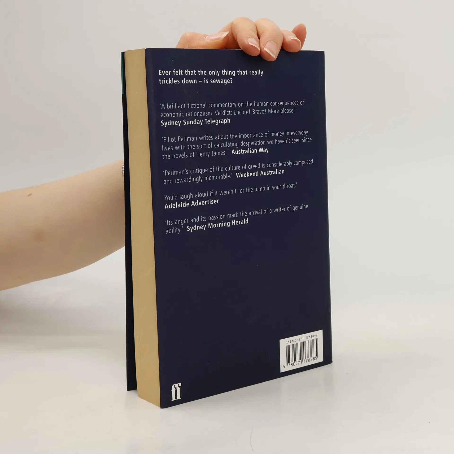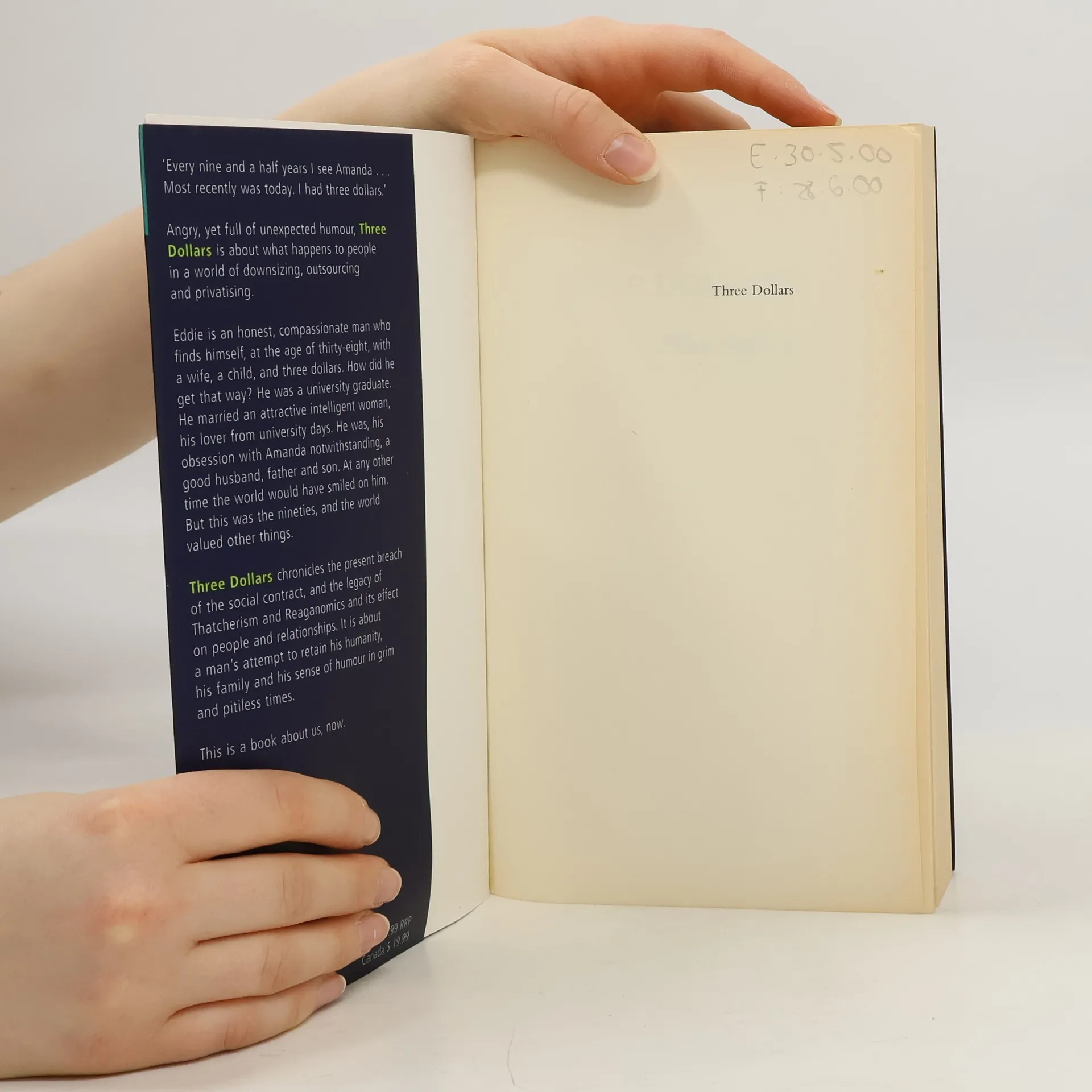 Eddie is an honest, compassionate man who finds himself, at the age of thirty-eight, with a wife, a child, and three dollars. How did he get that way? He is a university graduate. He married an attractive intelligent woman, his lover from university days. He is a good husband, father and son. At any other time the world would smile on him. But this is the nineties, and the world values other things. Angry, yet full of unexpected humour, Three Dollars chronicles a modern breach in the social contract, and the legacy of Thatcherism and Reaganomics and its effect on people and relationships. It is about a man's attempt to retain his humanity, his family and his sense of humour in grim and pitiless times; about what happens to people in our brave new world of downsizing, outsourcing and privatising.