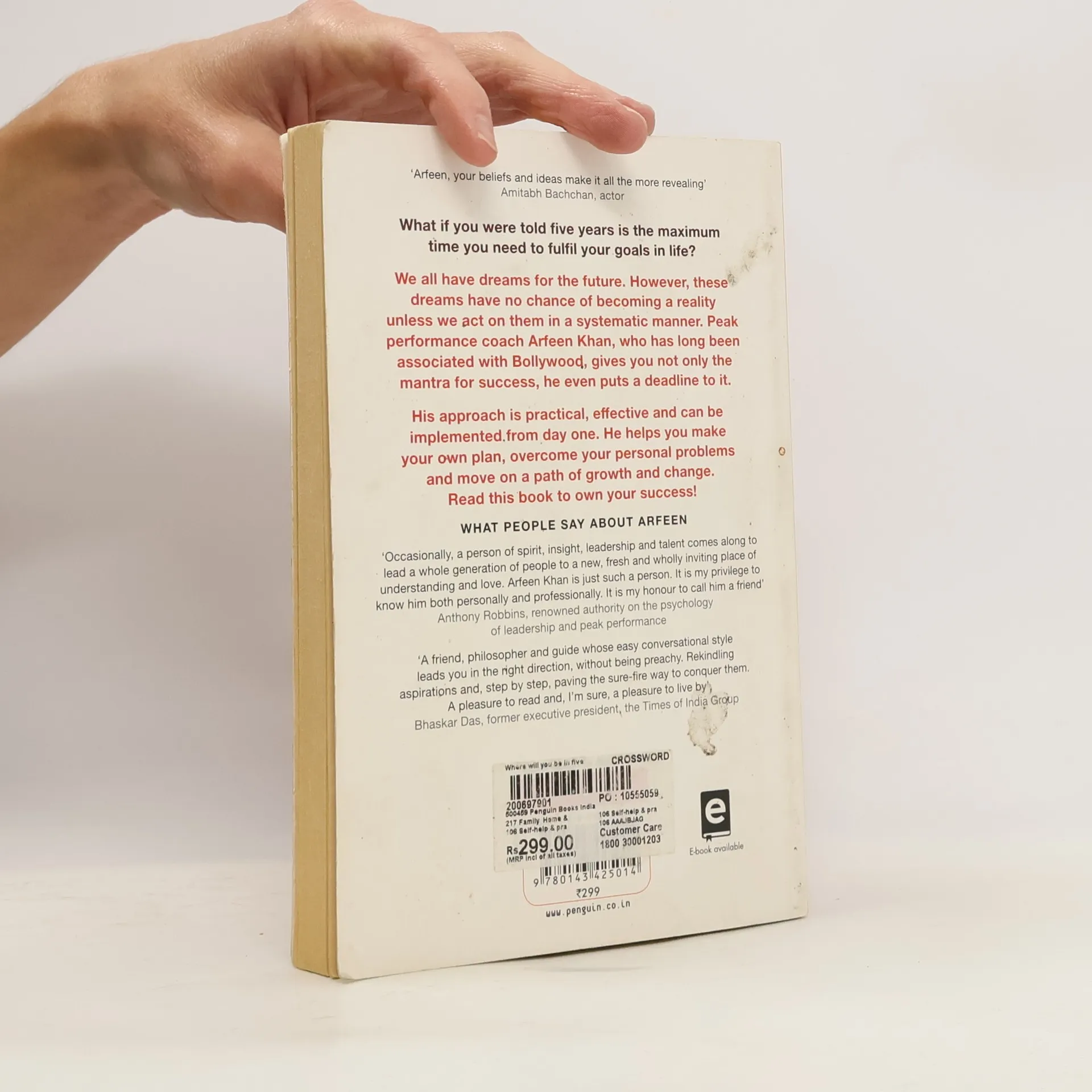 What if you were told that five years is the maximum time you need to fulfil your goals in life? We all dream about the future. However, we can t turn these dreams into reality unless we act on them in a systematic manner. Peak performance coach Arfeen Khan, who has been long associated with Bollywood, gives you not only the mantra for success, he even puts a deadline on it. His approach is practical, effective and can be implemented from day one. He helps you make your own plan, overcome your personal problems and move on a path of growth and change. Read this book to own your success!