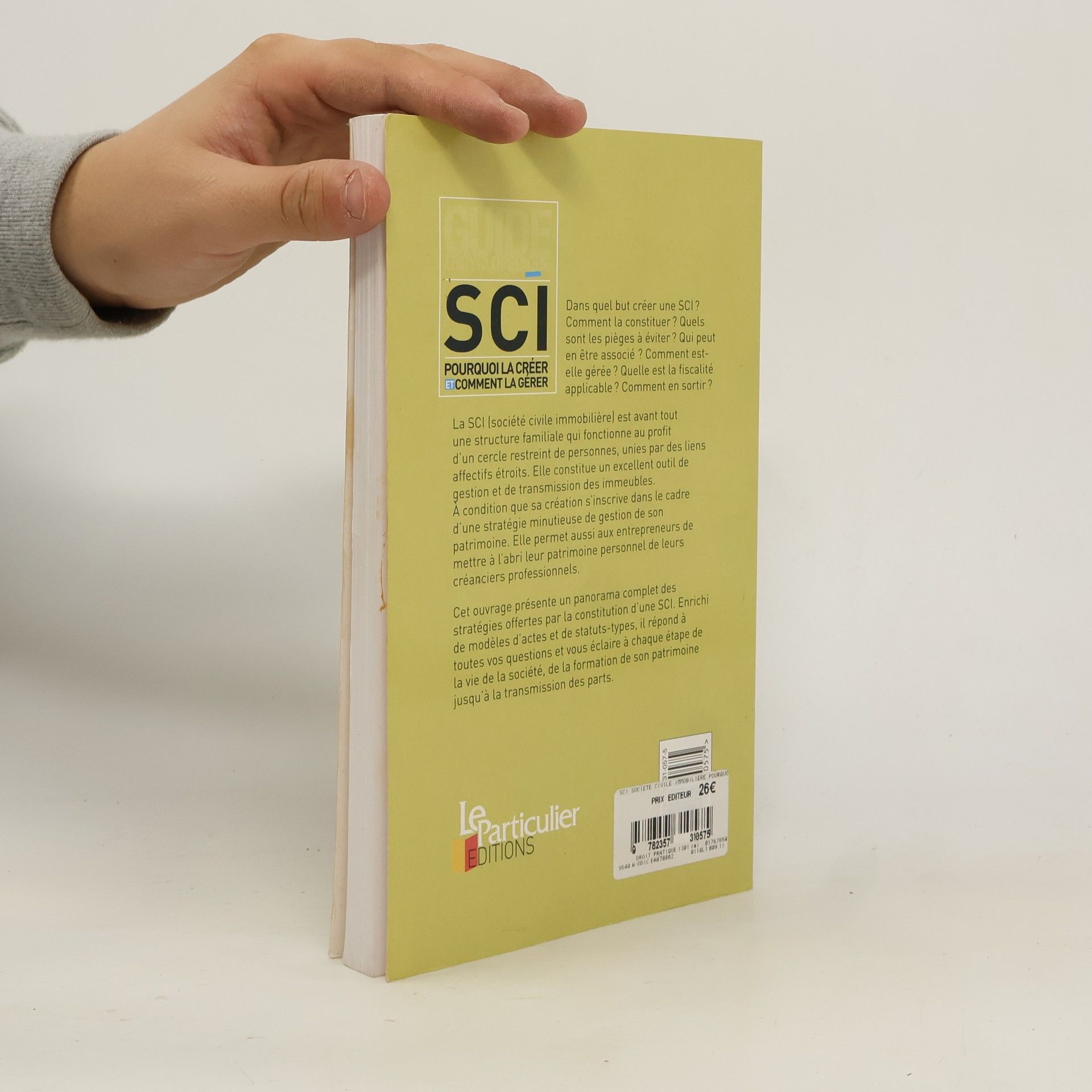 Dans quel but créer une SCI ? Comment la constituer ? Quels sont les pièges à éviter ? Qui peut en être associé ? Comment est-elle gérée? Quelle est la fiscalité applicable? Comment en sortir? La SCI (société civile immobilière) est avant tout une structure familiale qui fonctionne au profit d'un cercle restreint de personnes, unies par des liens affectifs étroits. Elle constitue un excellent outil de gestion et de transmission des immeubles. A condition que sa création s'inscrive dans le cadre d'une stratégie minutieuse de gestion de son patrimoine. Elle permet aussi aux entrepreneurs de mettre à l'abri leur patrimoine personnel de leurs créanciers professionnels. Cet ouvrage présente un panorama complet des stratégies offertes par la constitution d'une SCI. Enrichi de modèles d'actes et de statuts-types, il répond à toutes vos questions et vous éclaire à chaque étape de la vie de la société, de la formation de son patrimoine jusqu'à la transmission des parts.