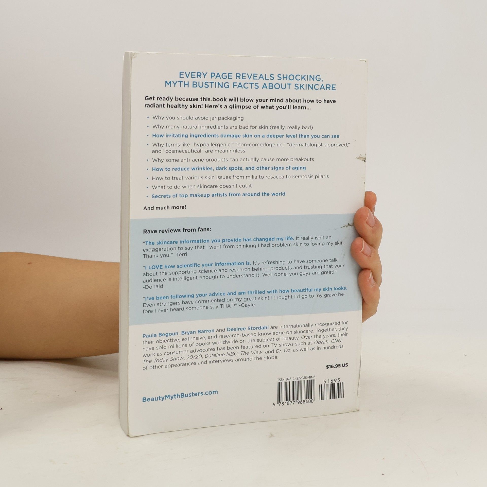 Best-selling beauty author and internationally known "Cosmetics Cop" Paula Begoun and her team of beauty experts from Don’t Go to the Cosmetics Counter Without Me are back to give readers the facts about skin and how it needs to be treated. From acne to wrinkles and everything in between, Paula and her team reveal the truth about skin type, skin concerns, cosmetic corrective procedures, dozens of today's most pervasive cosmetic myths, and some of the most helpful, surprising makeup tips we've uncovered in our careers. Readers learn why so many products don't work as claimed, discover some of our favorite products, and learn how you can easily put together a skincare routine that gets you the best possible results without sorting through all the hype and misleading information. Readers feel as though they're getting truly helpful advice from a good friend — someone who's been there, knows what skin problems do to one's self-esteem, and is shedding some much-needed light on the often-confusing world of beauty. The best part? All of the skincare tips and recommendations in this book are based on published scientific research, so you can be confident you're making the smartest decisions for your beauty needs.
