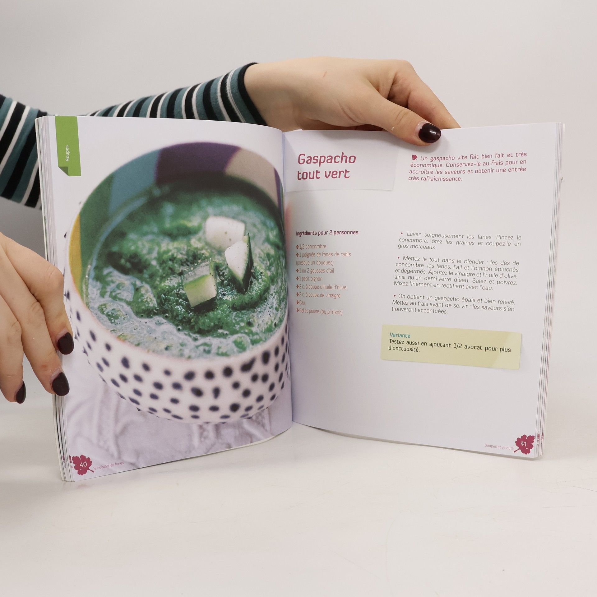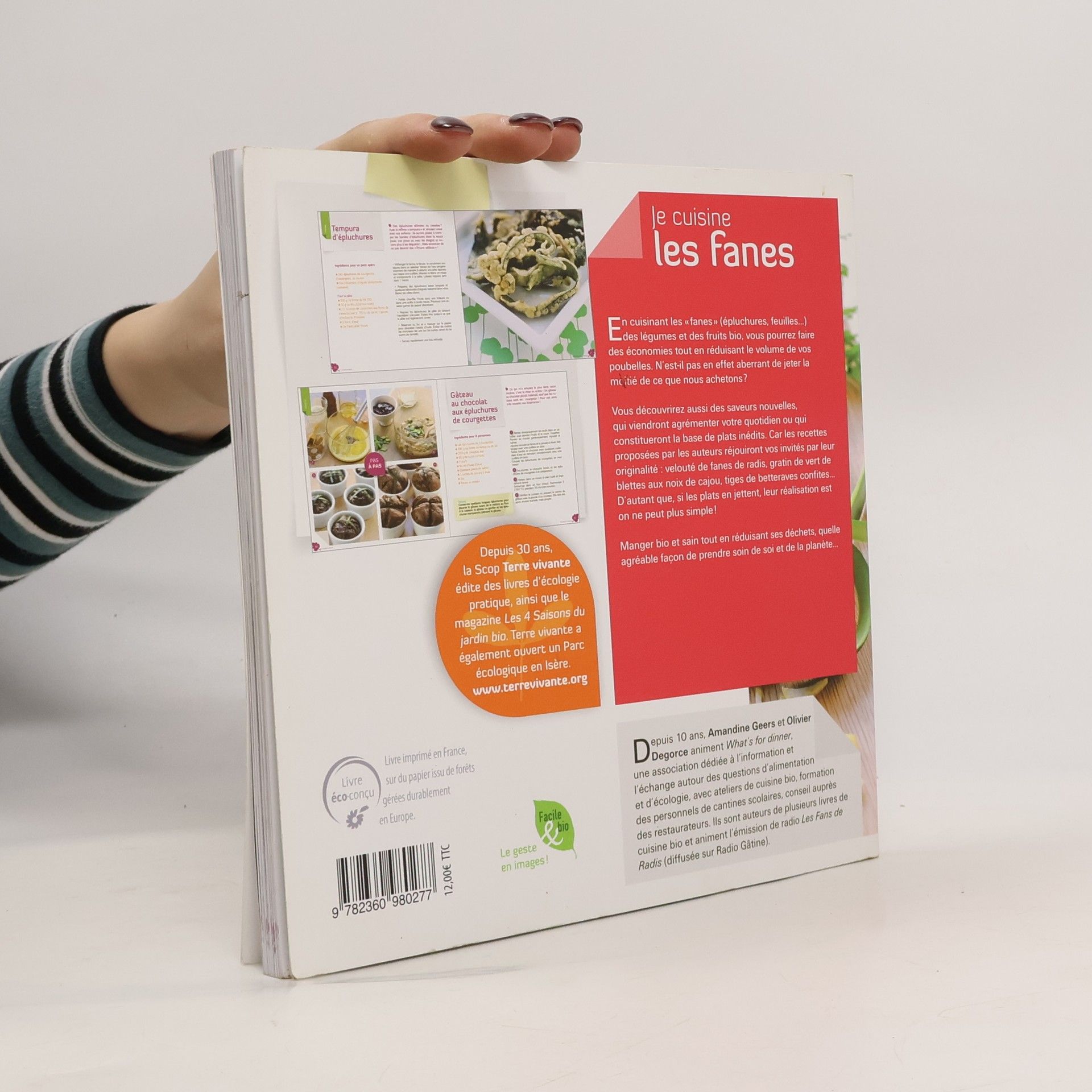 L’épluchage des fruits et légumes (à la condition qu’ils soient bio), nous prive de très précieux micro-nutriments (vitamines, minéraux, polyphénols....). Et pendant ce temps, nos poubelles débordent ... L a solution : apprendre à cuisiner épluchures, fanes et trognons. Grâce aux 35 recettes de ce livre proposées par nos cuisiniers créatifs Amandine Geers et Olivier Degorce, vous combinerez économie, écologie et gastronomie ! Un vrai régal pour le palais et pour les yeux ! Et un cadeau pour la planète ! Que diriez-vous d’un carpaccio d’épluchures de courgettes, d’un velouté de fanes de radis, de fajitas de poulet aux fanes de carottes et au cidre, d’un pesto de fanes ou d’un gâteau chocolat et fleurs de courgettes ? Au sommaire 6 entrées, 5 soupes, 12 plats et accompagnements ; 4 condiments et 8 desserts et boissons ! De nouvelles saveurs, des ingrédients inédits, des qualités nutritionnelles insoupçonnées. ... « Je cuisine les fanes », une très jolie façon de réduire ses déchets ! Un livre qui devrait rapidement trouver sa place dans toutes les bonnes cuisines de France.