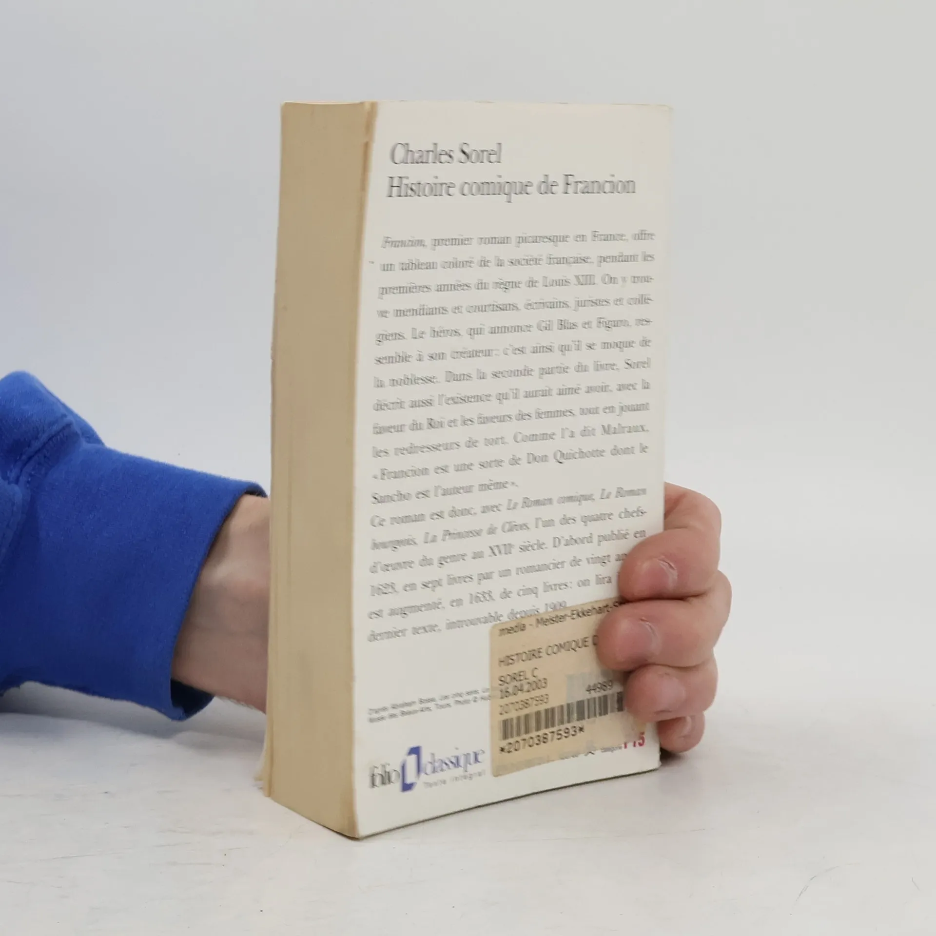 Francion, premier roman picaresque en France, offre un tableau coloré de la société française, pendant les premières années du règne de Louis XIII. On y trouve mendiants et courtisans, écrivains, juristes et collégiens. Le héros, qui annonce Gil Blas et Figaro, ressemble à son créateur : c'est ainsi qu'il se moque de la noblesse. Dans la seconde partie du livre, Sorel décrit aussi l'existence qu'il aurait aimé avoir, avec la faveur du Roi et les faveurs des femmes, tout en jouant les redresseurs de tort. Comme l'a dit Malraux, «Francion est une sorte de Don Quichotte dont le Sancho est l'auteur même».Ce roman est donc, avec Le Roman comique, Le Roman bourgeois, La Princesse de Clèves, l'un des quatre chefs-d'œuvre du genre au XVIIe siècle. D'abord publié en 1623, en sept livres par un romancier de vingt ans, il est augmenté, en 1633, de cinq livres : on lira ici ce dernier texte, introuvable depuis 1909.