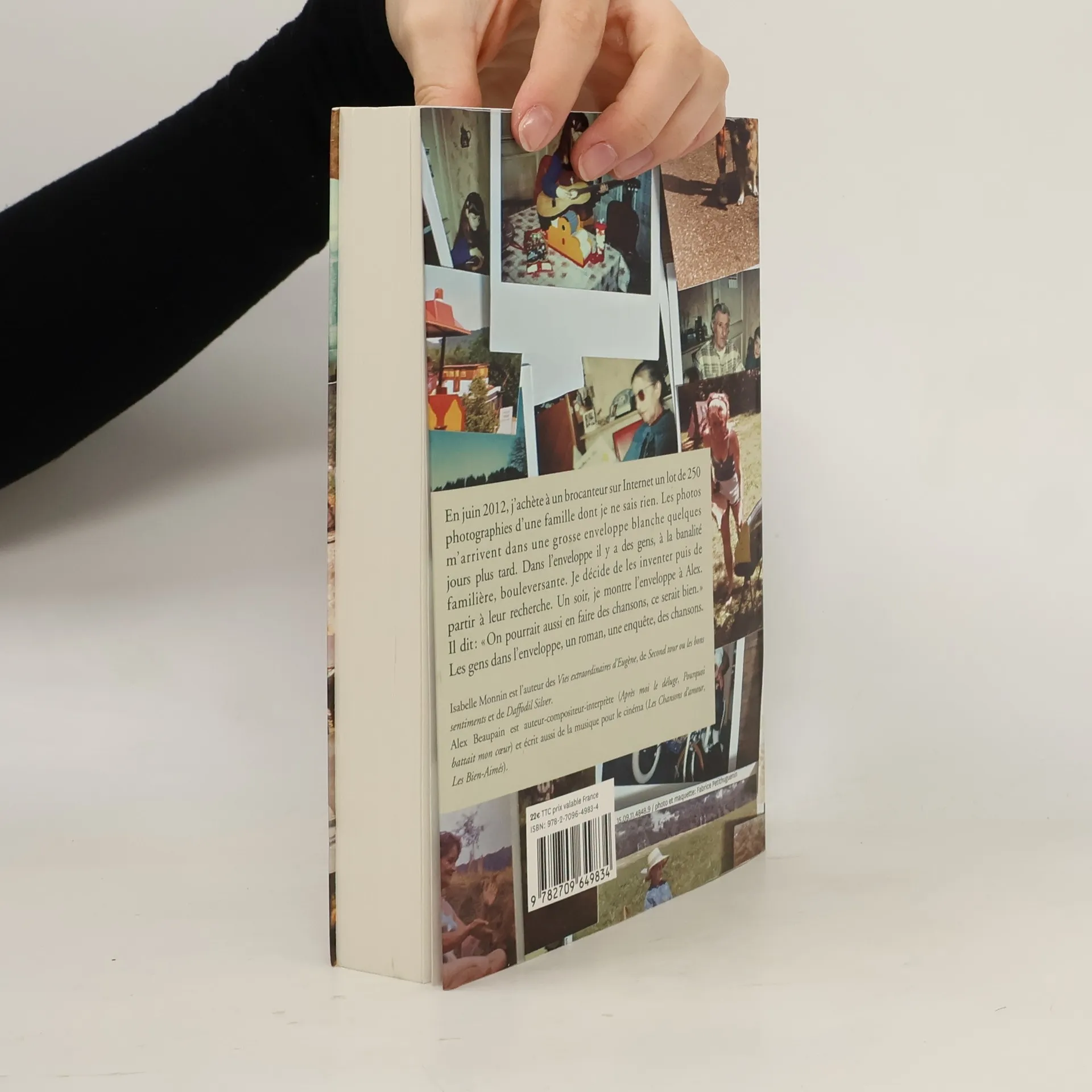 En juin 2012, j’ai acheté sur Internet un lot de 250 photographies d’une famille dont je ne savais rien. Les photos me sont arrivées dans une grosse enveloppe blanche quelques jours plus tard. Dans l’enveloppe, il y avait des gens à la banalité familière, bouleversante. Je n’imaginais alors pas l’aventure qu’elle me ferait vivre. J’allais inventer la vie de ces gens puis je partirais à leur recherche. Un soir, j’ai montré l’enveloppe à mon meilleur ami, Alex Beaupain. Il a dit : « On pourrait aussi en faire des chansons. » L’idée semblait folle. Le livre contient un roman, un album photo, le journal de bord de mon enquête et un disque, interprété par Alex, Camelia Jordana, Clotilde Hesme et Françoise Fabian. Les gens de l’enveloppe ont prêté leur voix à deux reprises de chansons qui ont marqué leur vie. Les gens dans l’enveloppe est ainsi un objet littéraire moderne et singulier. Faisant œuvre de vies ordinaires, il interroge le rapport entre le romancier et ses personnages. Il est surtout l’histoire d’une rencontre, entre eux et moi.