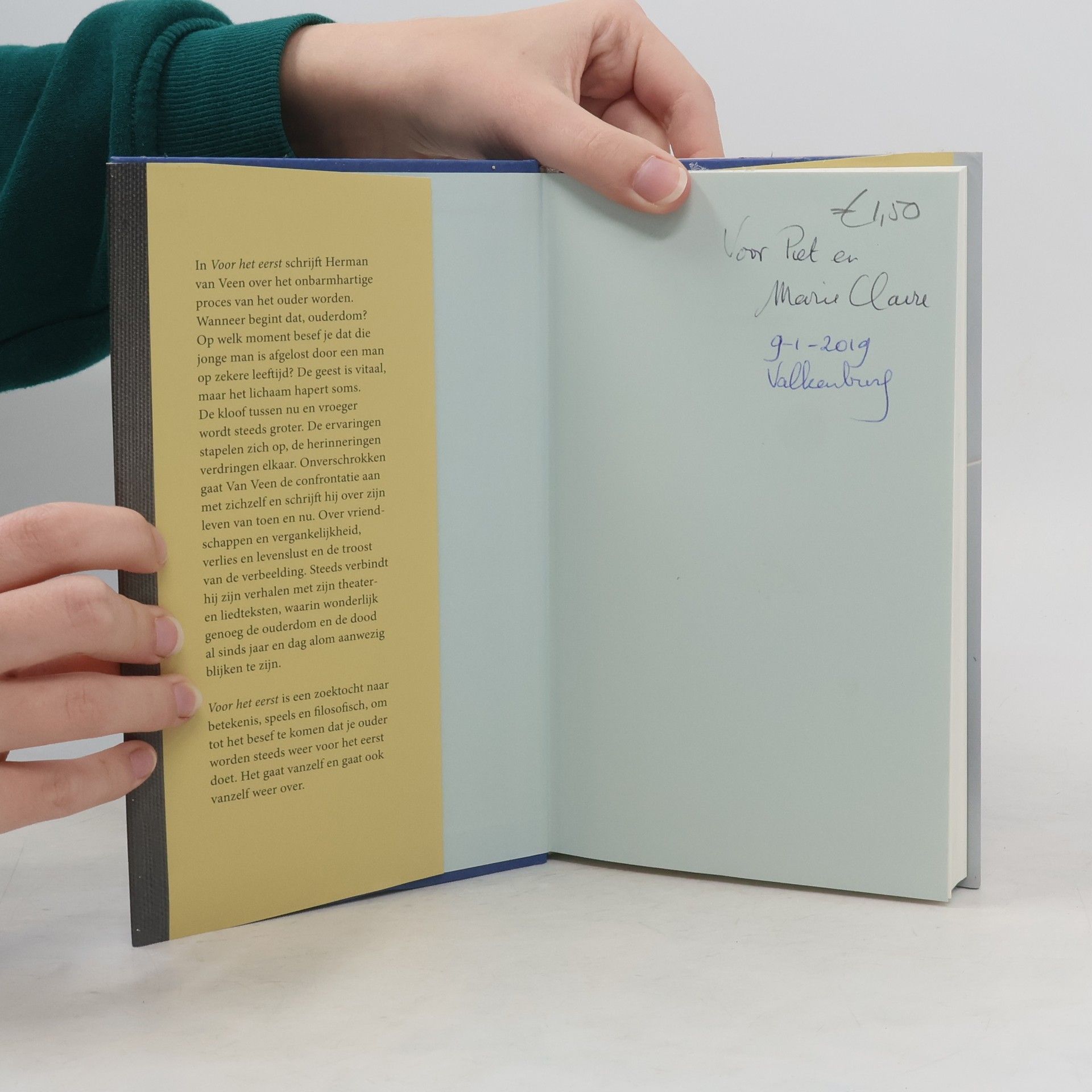 In Voor het eerst schrijft Herman van Veen over het onbarmhartige proces van het ouder worden. Wanneer begint dat, ouderdom? Op welk moment besef je dat die jonge man is afgelost door een man op zekere leeftijd? De geest is vitaal, maar het lichaam hapert soms. De kloof tussen nu en vroeger wordt steeds groter. De ervaringen stapelen zich op, de herinneringen verdringen elkaar. Onverschrokken gaat Van Veen de confrontatie aan met zichzelf en schrijft hij over zijn leven van toen en nu. Over vriendschappen en vergankelijkheid, verlies en levenslust en de troost van de verbeelding. Steeds verbindt hij zijn verhalen met zijn theater- en liedteksten, waarin wonderlijk genoeg de ouderdom en de dood al sinds jaar en dag alom aanwezig blijken te zijn. Voor het eerst is een zoektocht naar betekenis, speels en filosofisch, om tot het besef te komen dat je ouder worden steeds weer voor het eerst doet. Het gaat vanzelf en gaat vanzelf weer over.