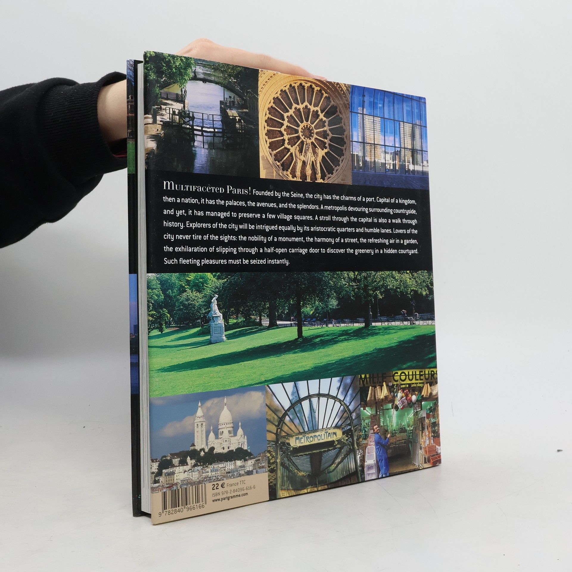 Multifaceted Paris! Founded by the Seine, the city has the charms of a port. Capital of a kingdom, then a nation, it has the palaces, the avenues, and the splendors.A metropolis devouring surrounding countryside, and yet, it has managed to conserve a few village squares within its periphery. A stroll through the capital is also a walk through history.Explorers of the city will be intrigued equally by its aristocratic quarters and humble lanes. Lovers of the city never tire of the sights: the nobility of a monument, the harmony of a street, the refreshing air in a garden, the exhilaration of slipping through a half-open carriage door to discover the greenery in a hidden courtyard. Such fleeting pleasures must be seized instantly.