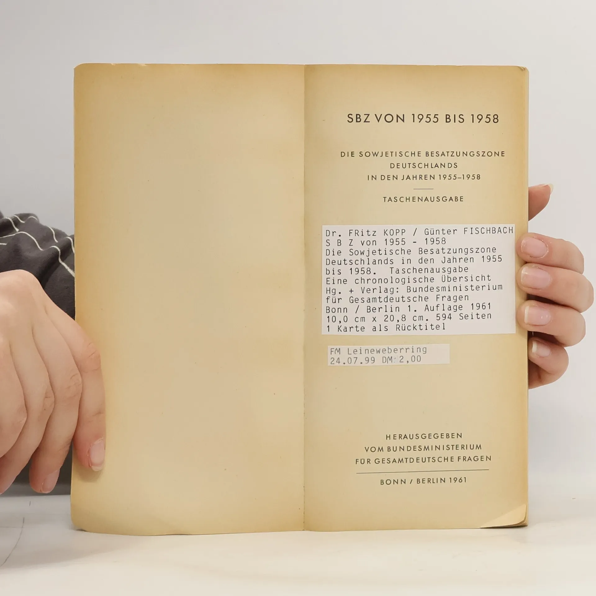 SBZ von 1955 bis 1958. Die Sowjetische Besatzungszone Deutschlands in den Jahren 1955-1958, Fritz Koppe, Günter Fischbach