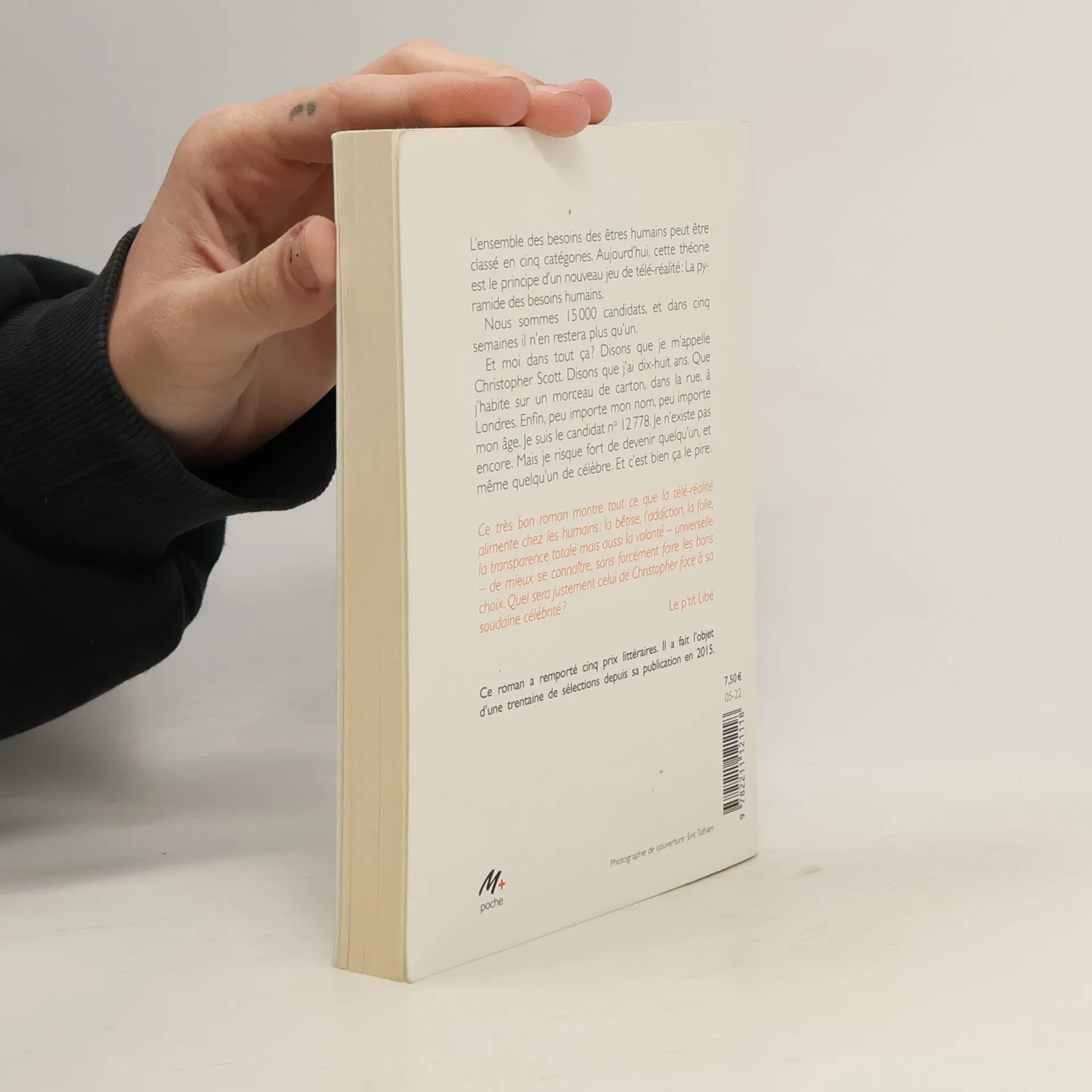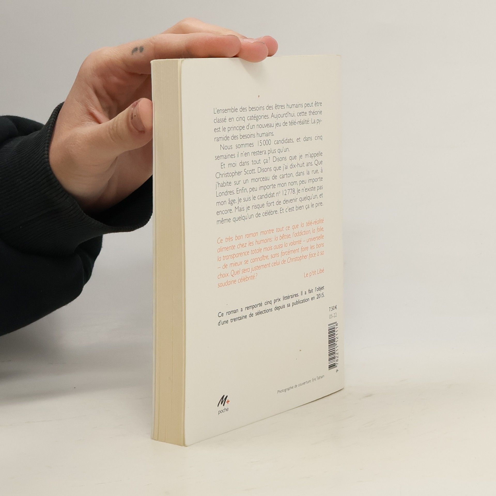 L'ensemble des besoins des êtres humains peut être classé en cinq catégories. Aujourd'hui, cette théorie est le principe d'un nouveau jeu de télé-réalité : La pyramide des besoins humains. Nous sommes 15 000 candidats, et dans cinq semaines il n'en restera plus qu'un. Et moi dans tout ça ? Disons que je m'appelle Christopher Scott, que j'ai dix-huit ans et que j'habite sur un morceau de carton, dans la rue, à Londres. Enfin, peu importe mon nom, peu importe mon âge. Je suis le candidat no 12778. Je n'existe pas encore. Mais je risque fort de devenir quelqu'un, et même quelqu'un de célèbre. Et c'est bien ça le pire. 12/16 ans.